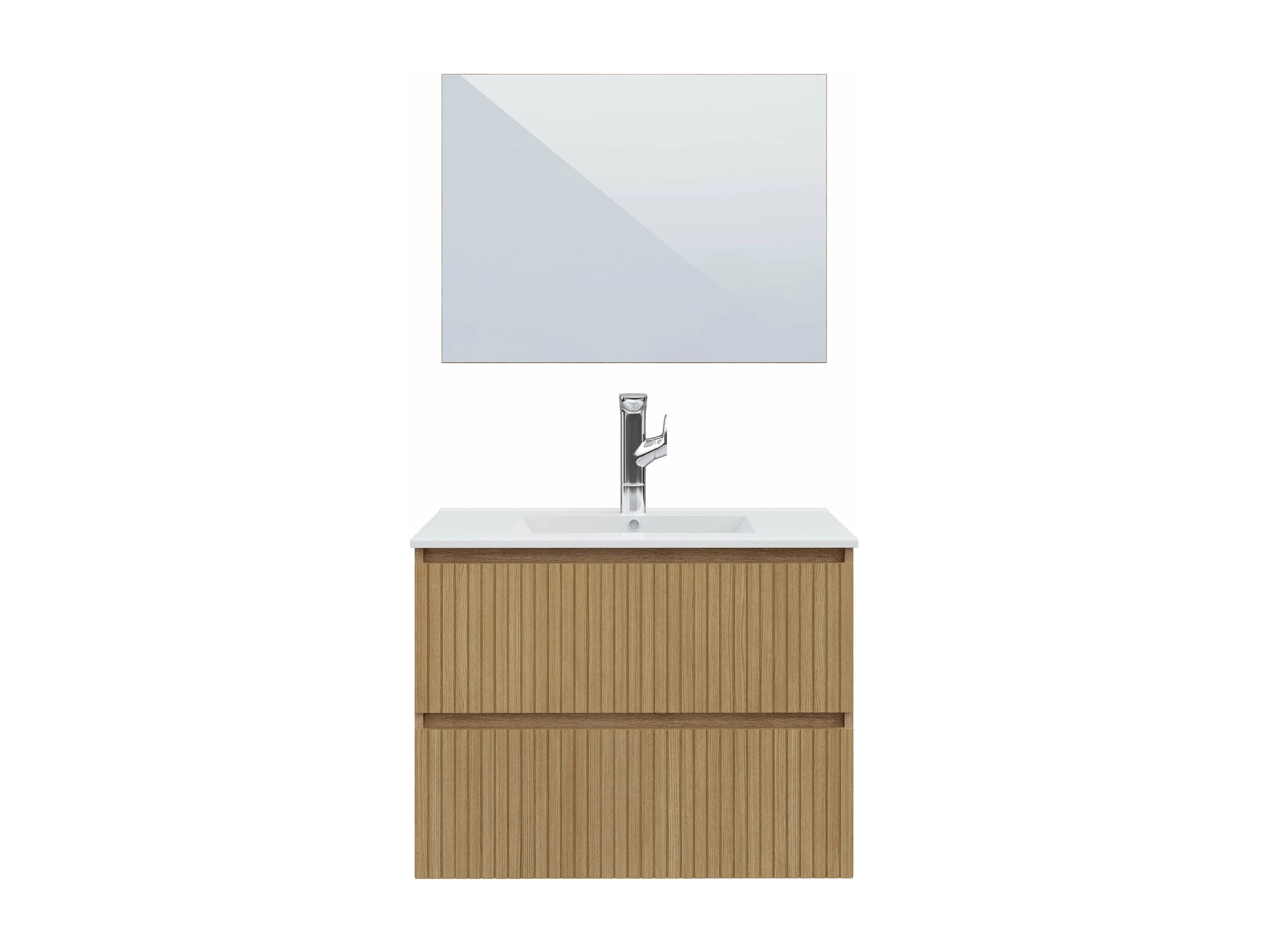 Meuble de salle de bain LETA 2 tiroirs 80 cm chêne T-BATH Inclus lavabo et miroir