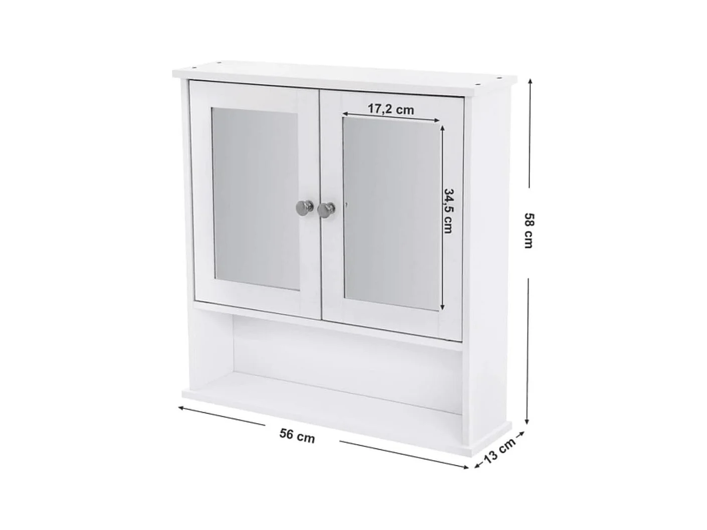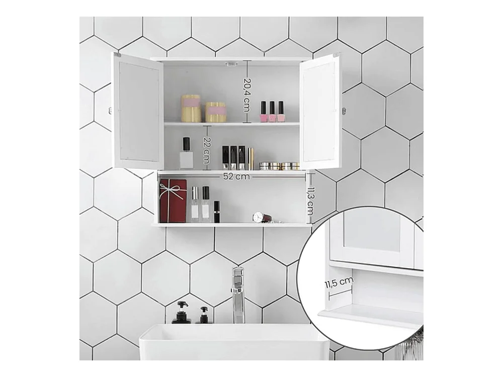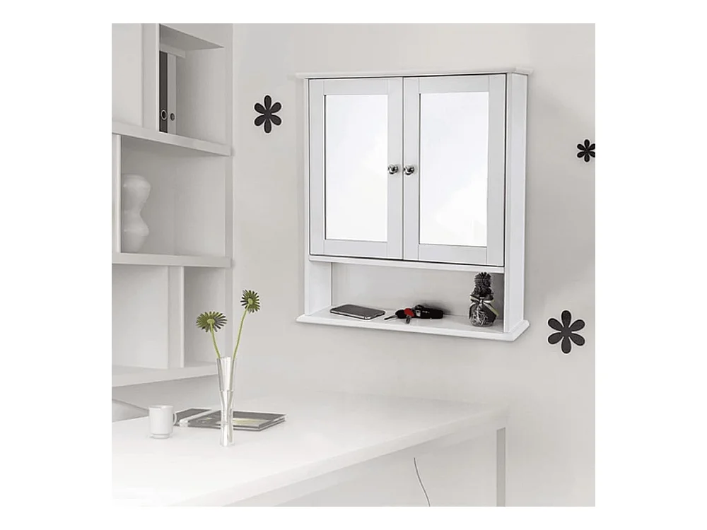Armoire murale étagère salle de bain 56L x 13l x 58H cm double porte miroir étagère réglable MDF blanc