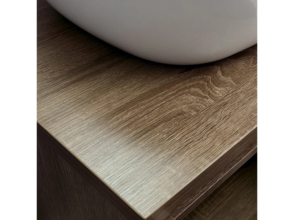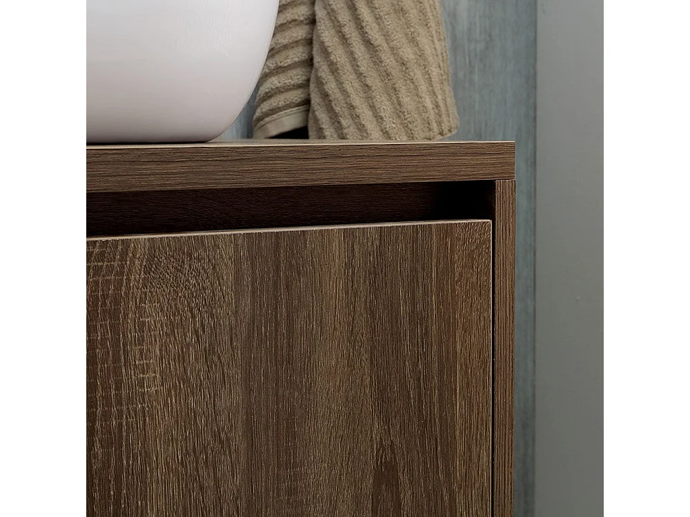 Meuble De Salle De Bain Noyer Foncé 60Cm Lavabo D'appui Et Miroir Bords Polis | Siena