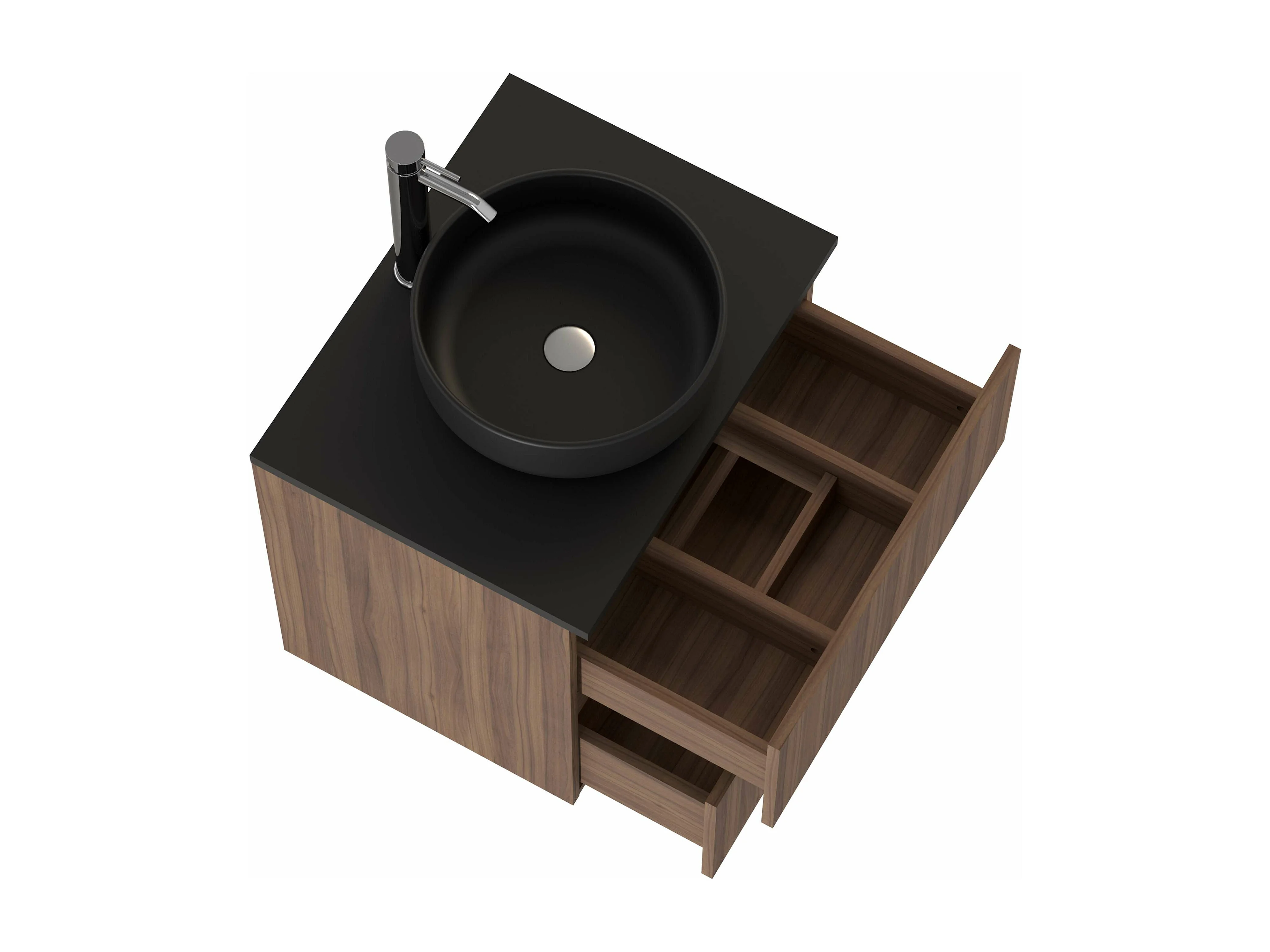 Meuble de salle de bain ORON 2 tiroirs 60 cm noyer T-BATH Inclus lavabo