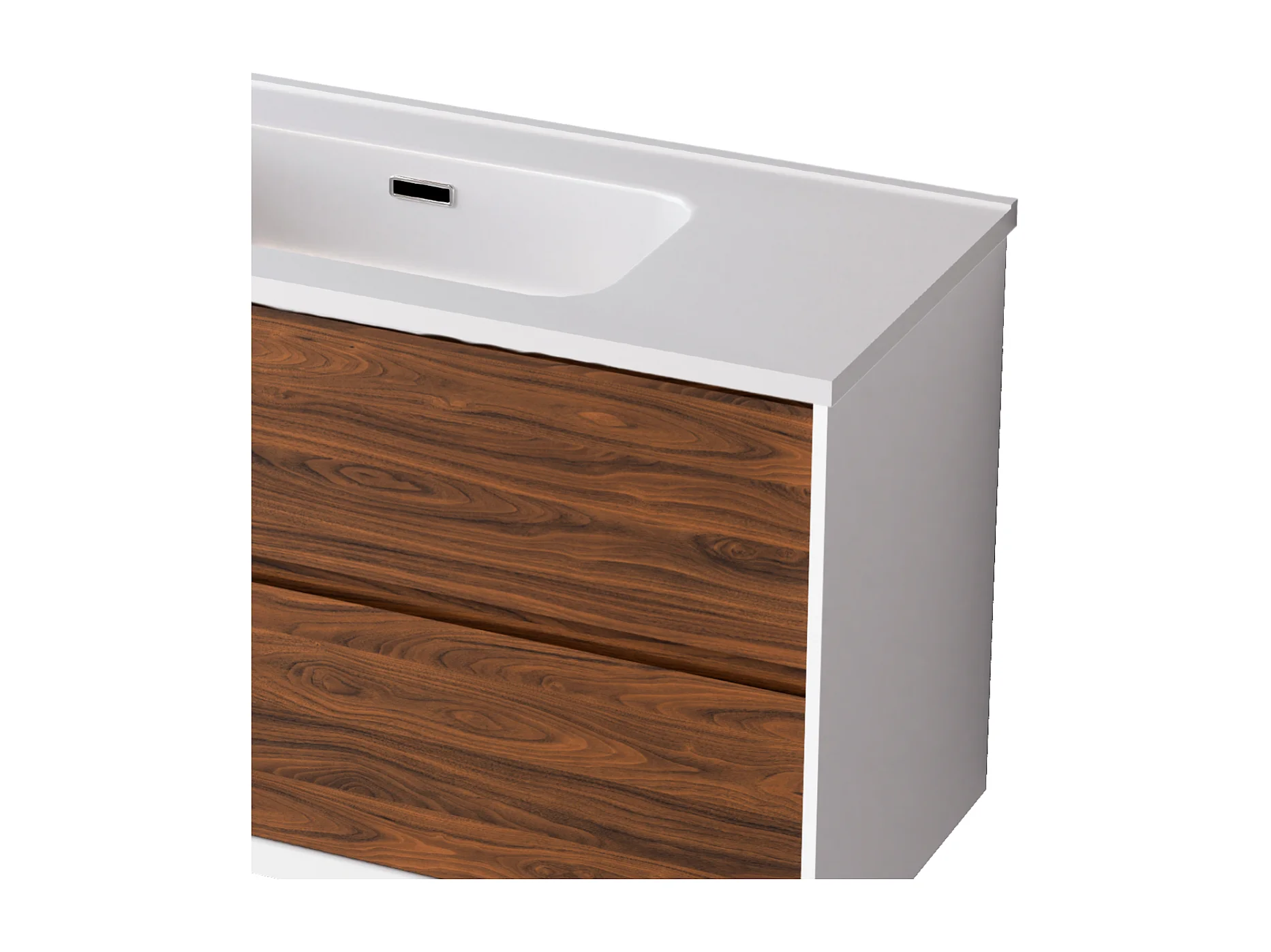 Meuble Salle de Bain COOL (81 cm x H54 x P45 cm), Plan Vasque Céramique WB, 2 Tiroirs, Laqué Blanc Mat/Noyer