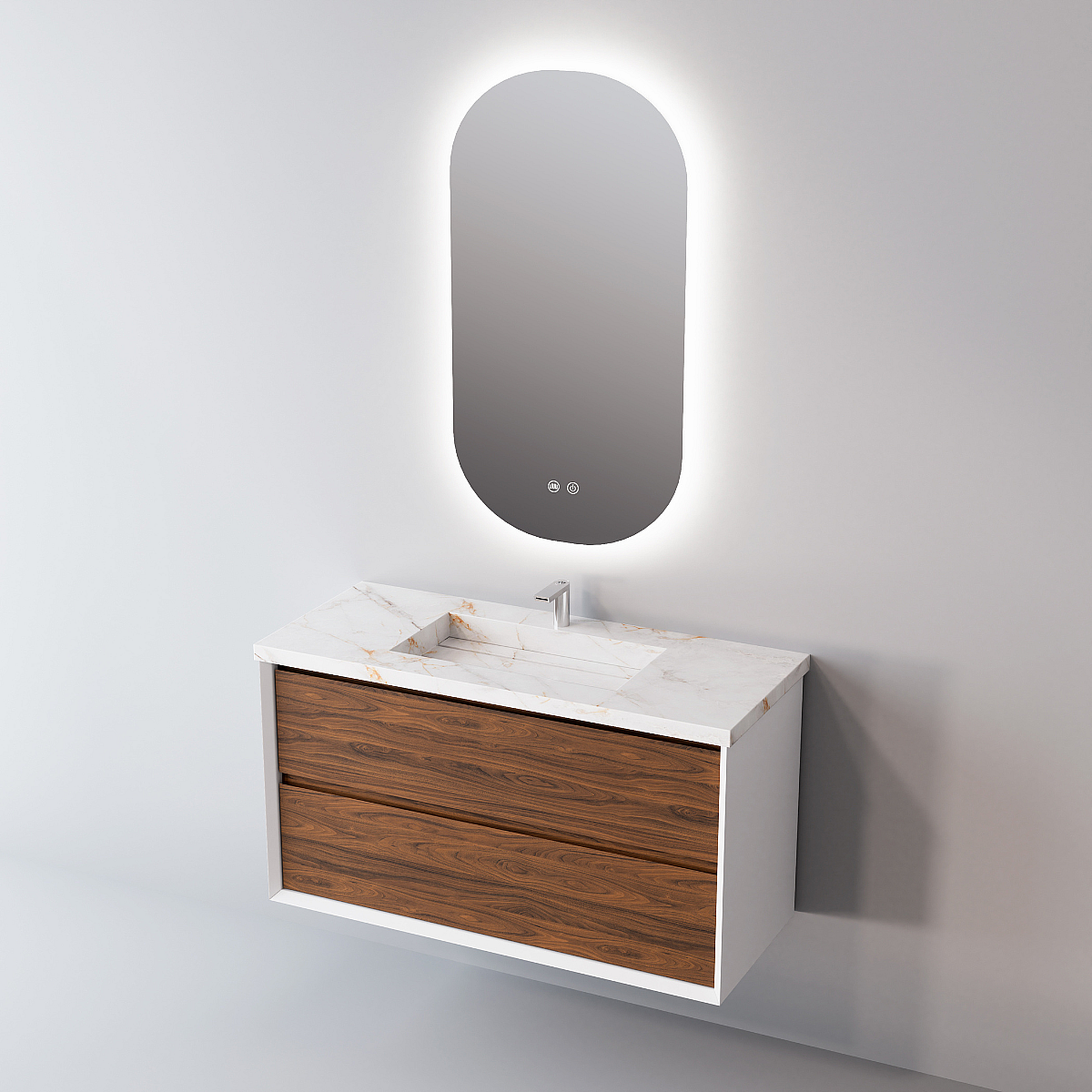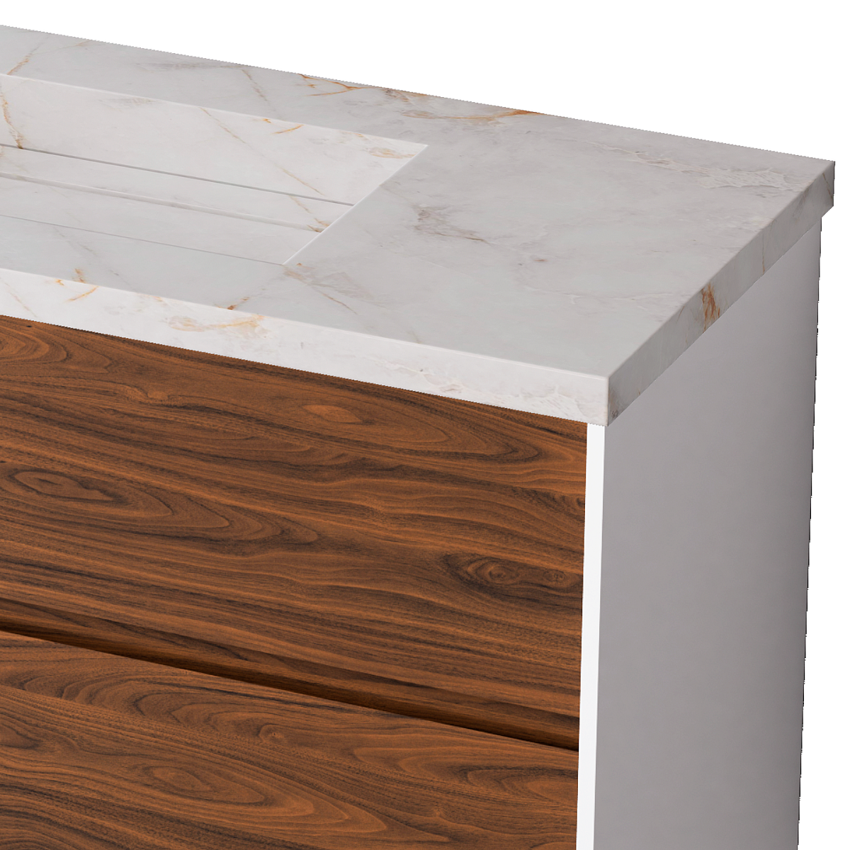 Meuble Salle de Bain COOL (61 cm x H54 x P45 cm), Plan Vasque Grès Cérame BS, 2 Tiroirs, Laqué Blanc Mat/Noyer