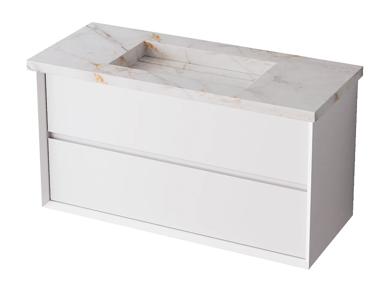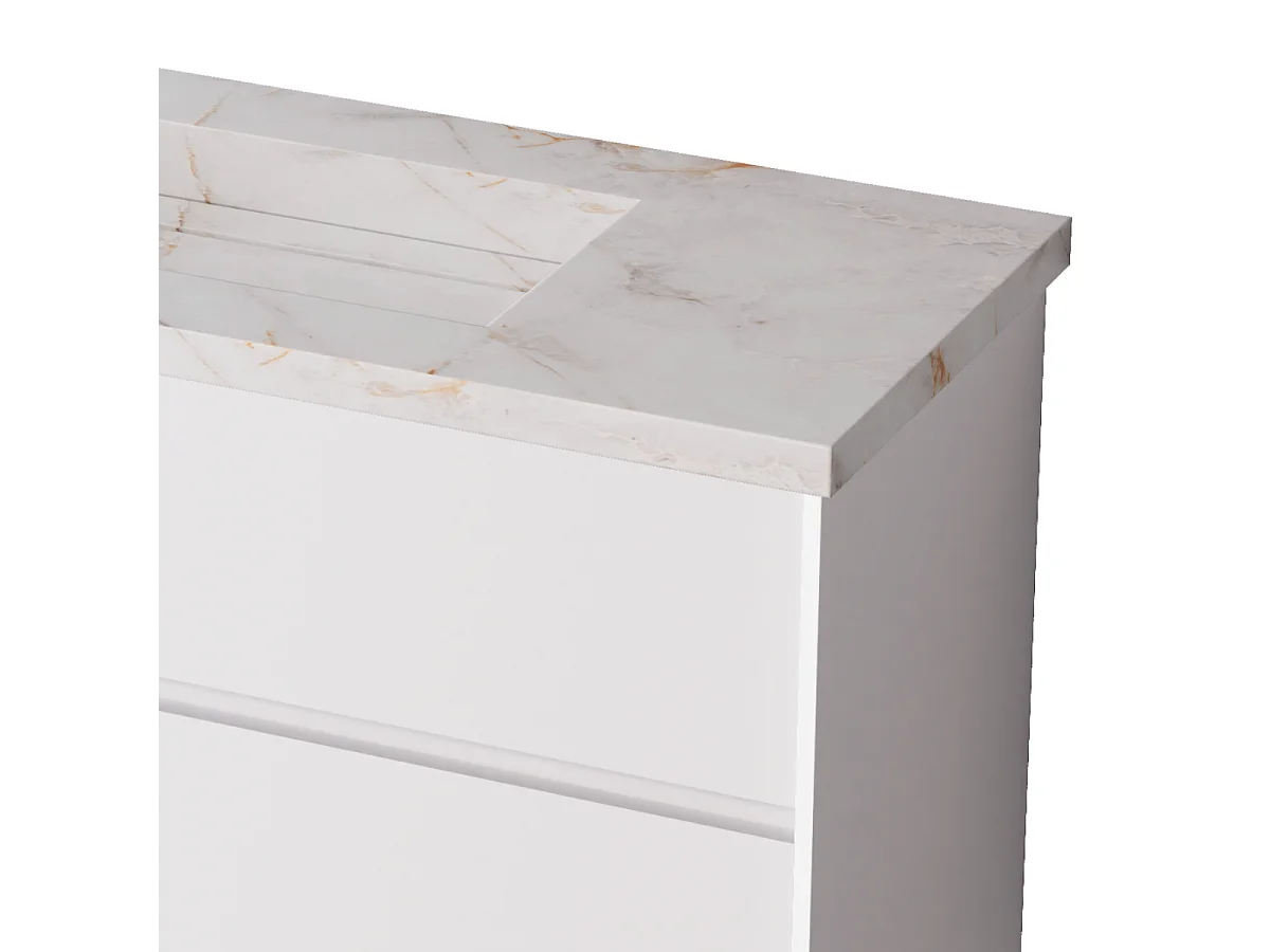 Meuble Salle de Bain COOL (61 cm x H54 x P45 cm), Plan Vasque Grès Cérame BS, 2 Tiroirs, Laqué Blanc Mat/Noyer