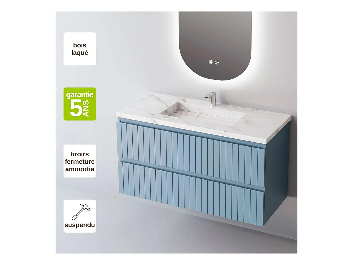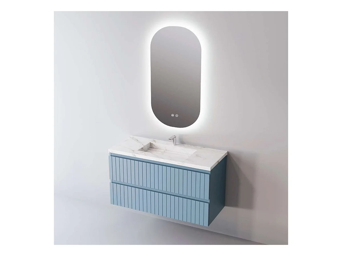 Meuble Salle de Bain GLOW (61 cm x H54 x P45 cm), Plan Vasque Grès Cérame BS, 2 Tiroirs, Laqué Bleu Cobalt Mat