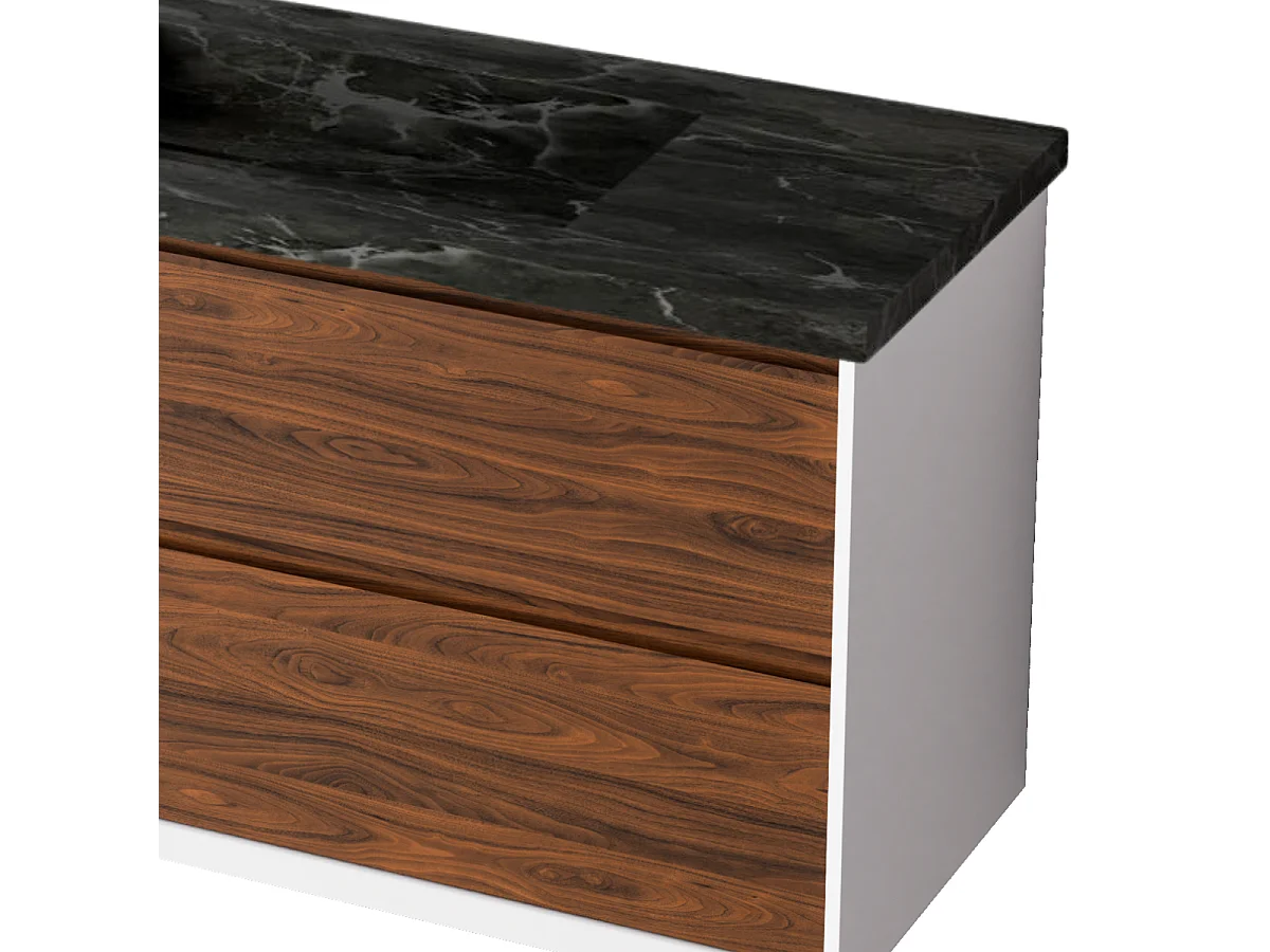 Meuble Salle de Bain COOL (61 cm x H54 x P45 cm), Plan Vasque Grès Cérame NA, 2 Tiroirs, Laqué Blanc Mat/Noyer