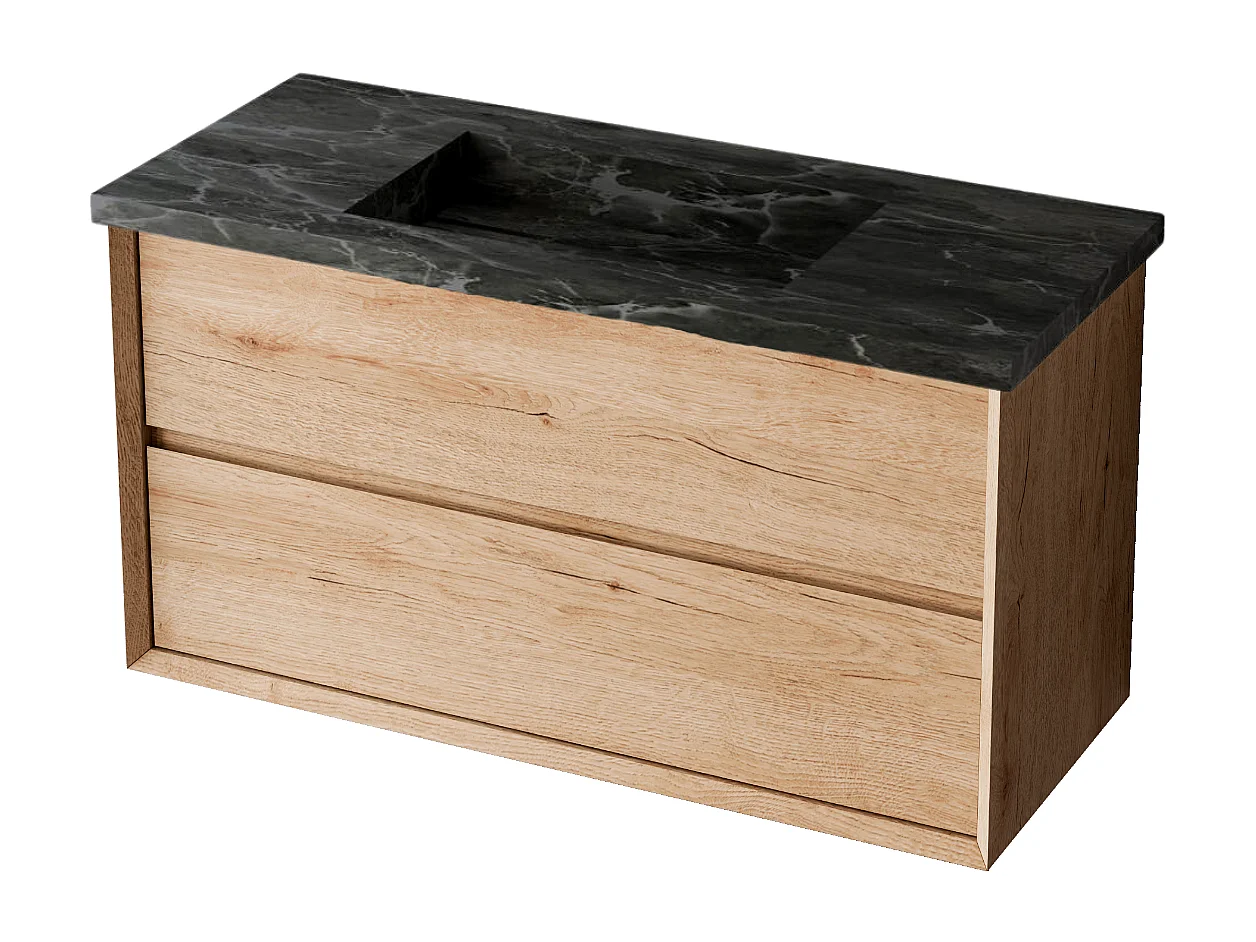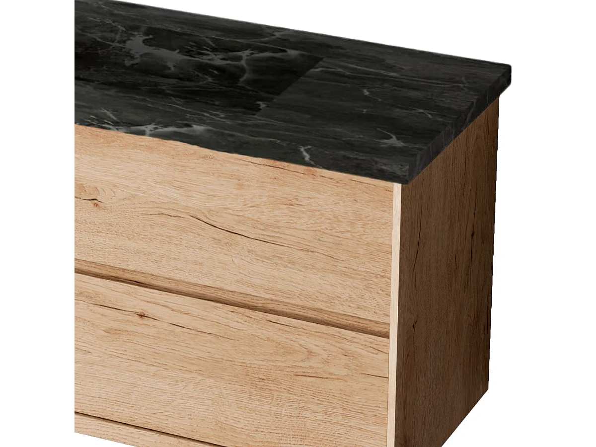 Meuble Salle de Bain COOL (81 cm x H54 x P45 cm), Plan Vasque Grès Cérame NA, 2 Tiroirs, Chêne Naturel