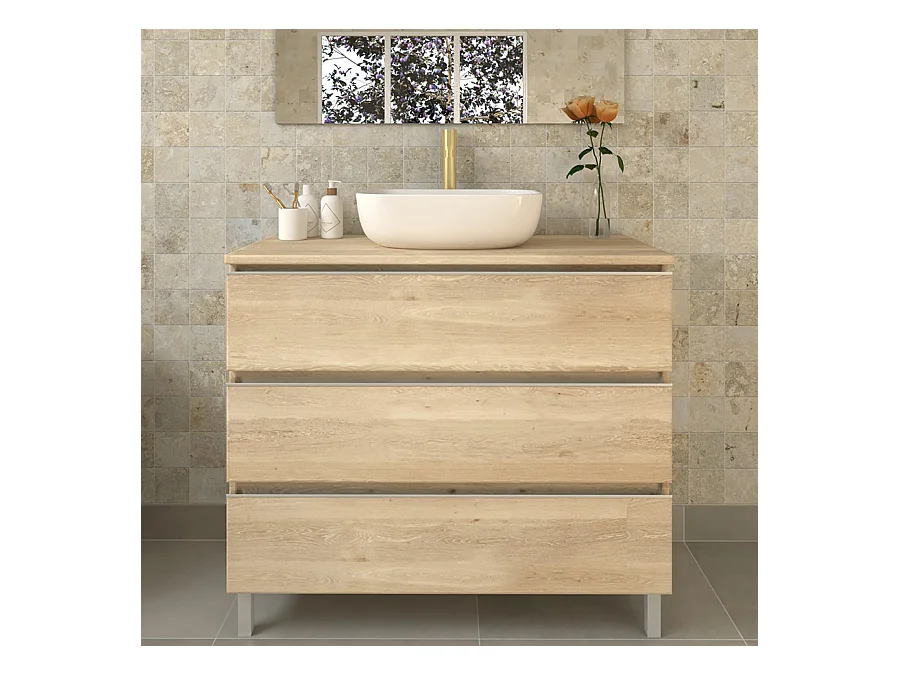 Meuble de salle de bain sans miroir avec vasque à poser arrondie PALMA - Bambou (chêne clair) - 70cm