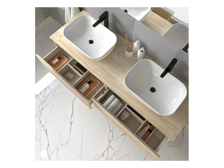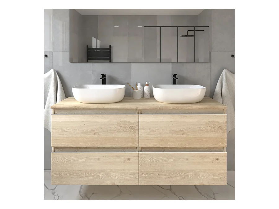 Meuble de salle de bain sans miroir avec vasques à poser arrondie BALEA - Bambou (chêne clair) - 120cm