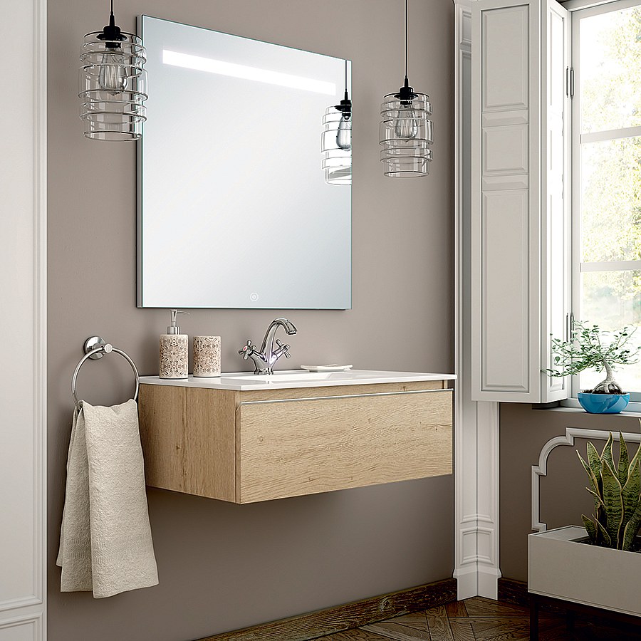 Meuble de salle de bain simple vasque - 1 tiroir - PENA et miroir Led STAM - bambou (chêne clair) - 80cm