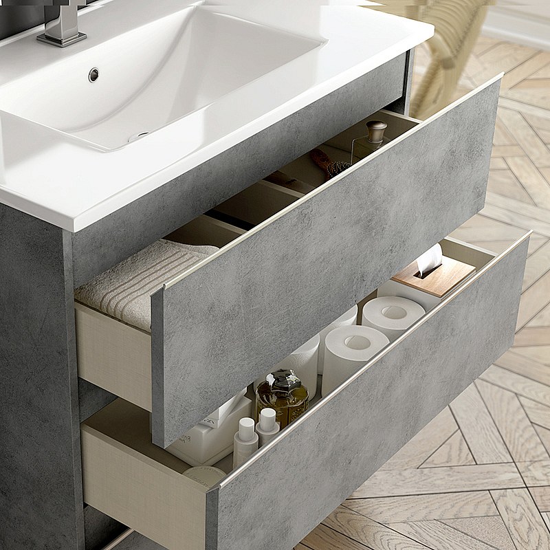 Meuble de salle de bain simple vasque - 2 tiroirs - BALEA et miroir Led STAM - ciment (gris) - 60cm