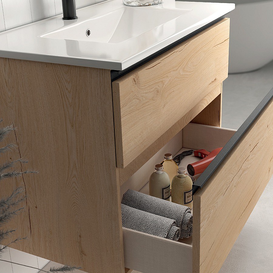 Meuble de salle de bain simple vasque - 2 tiroirs - CREMA et miroir Led VELDI - 80cm