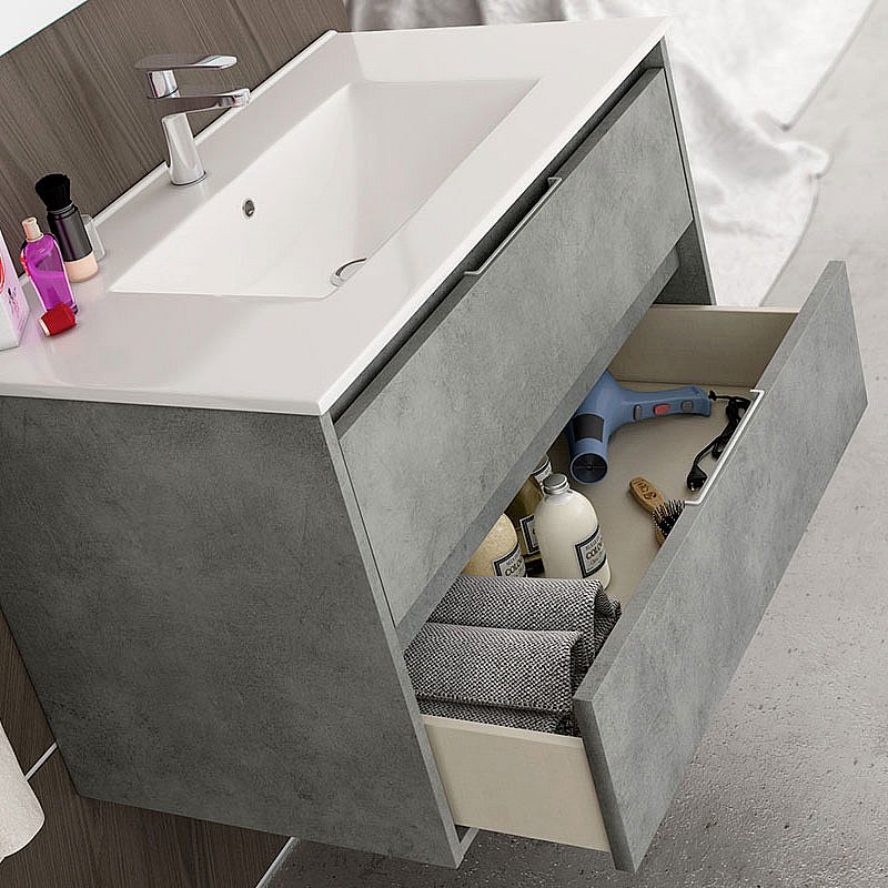 Meuble de salle de bain simple vasque - 2 tiroirs - IRIS et miroir Led STAM - ciment (gris) - 100cm