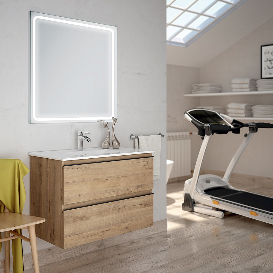 Meuble de salle de bain simple vasque - 2 tiroirs - TOURA et miroir Led VELDI - 80cm