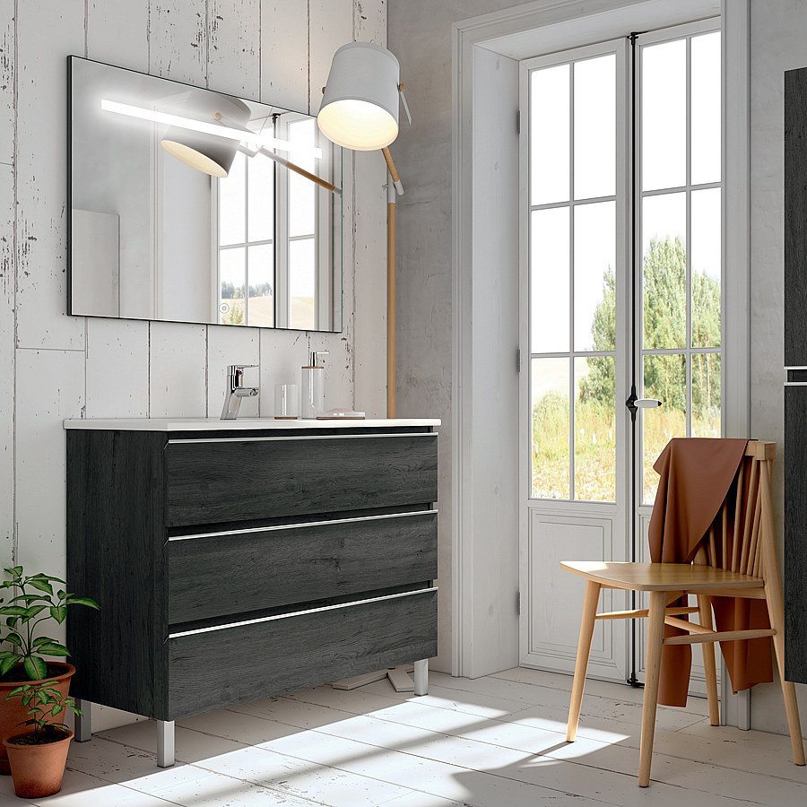 Meuble de salle de bain simple vasque - 3 tiroirs - PALMA et miroir Led STAM - ebony (bois noir) - 60cm