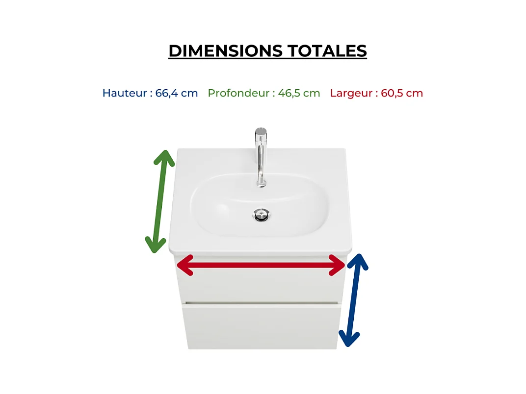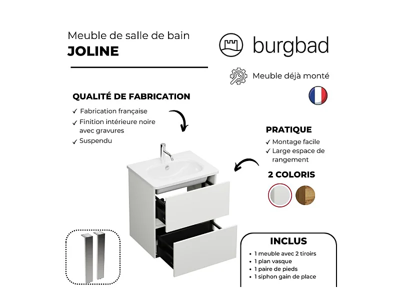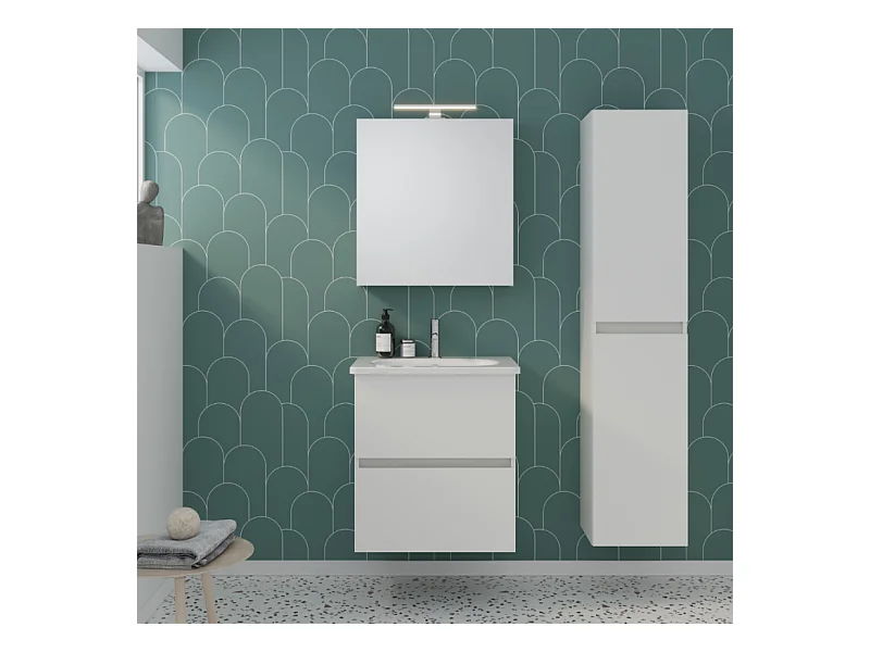 Meuble de salle de bain simple vasque 60 cm BURGBAD Joline blanc mat
