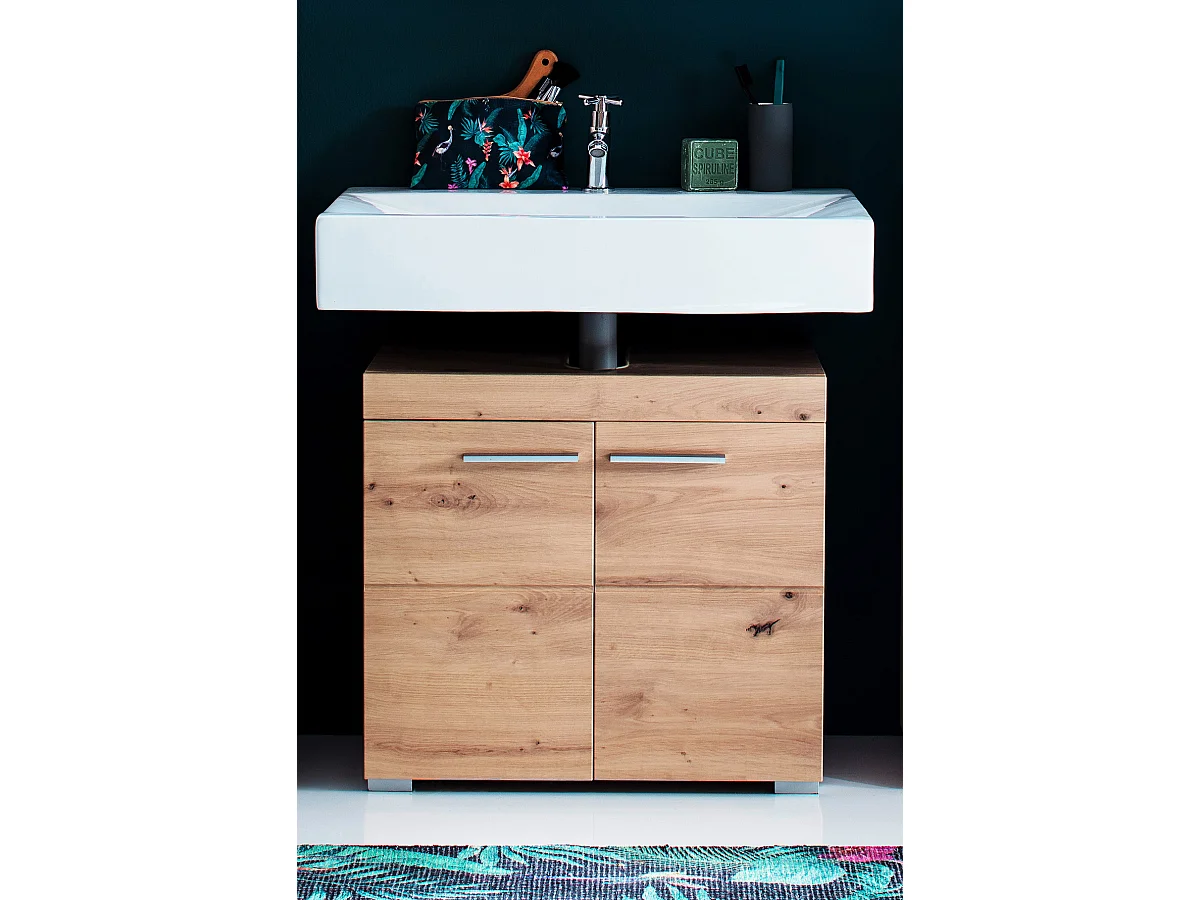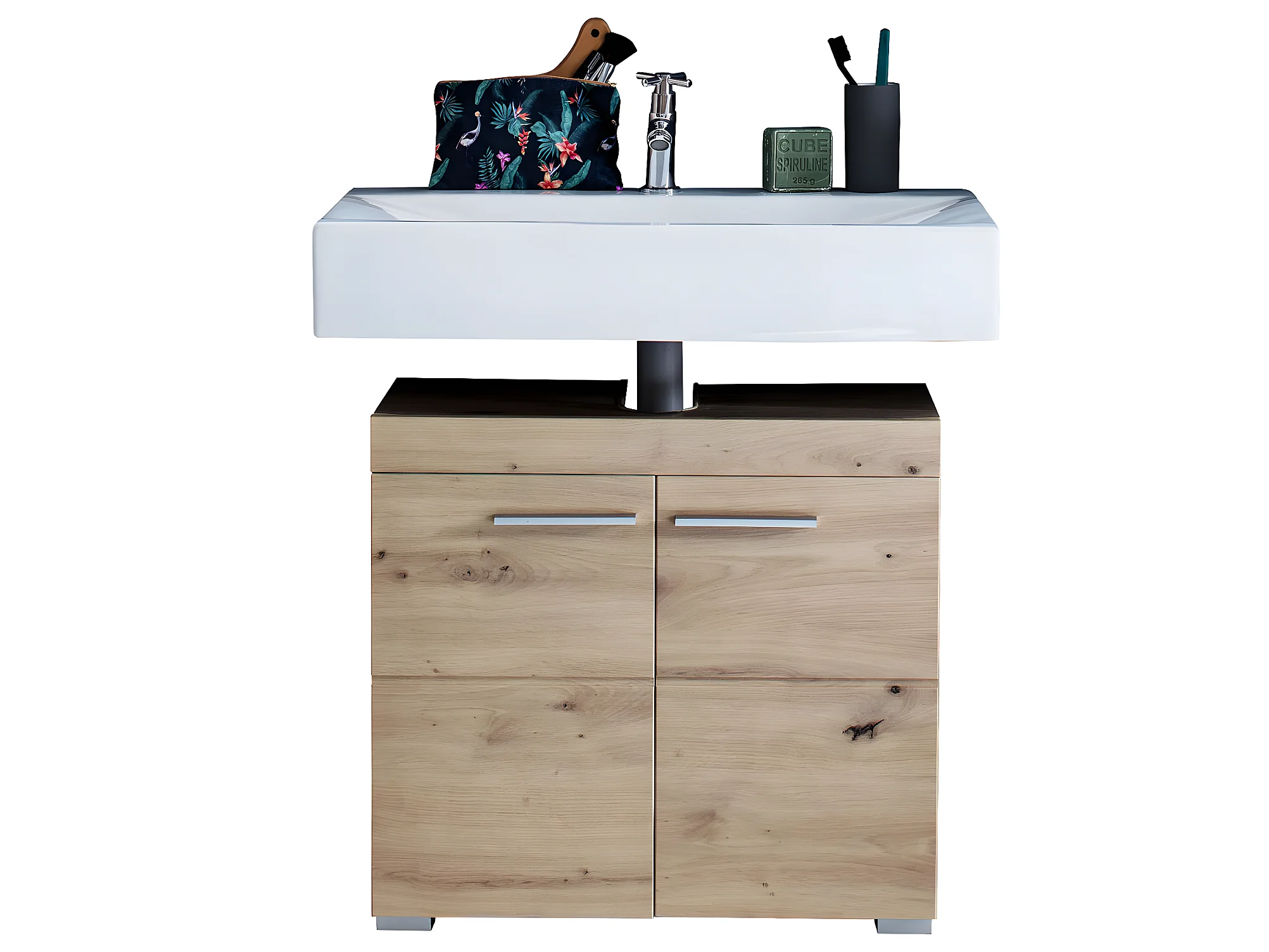 Meuble de salle de bain sous vasque avec 2 portes coloris chêne à nœuds