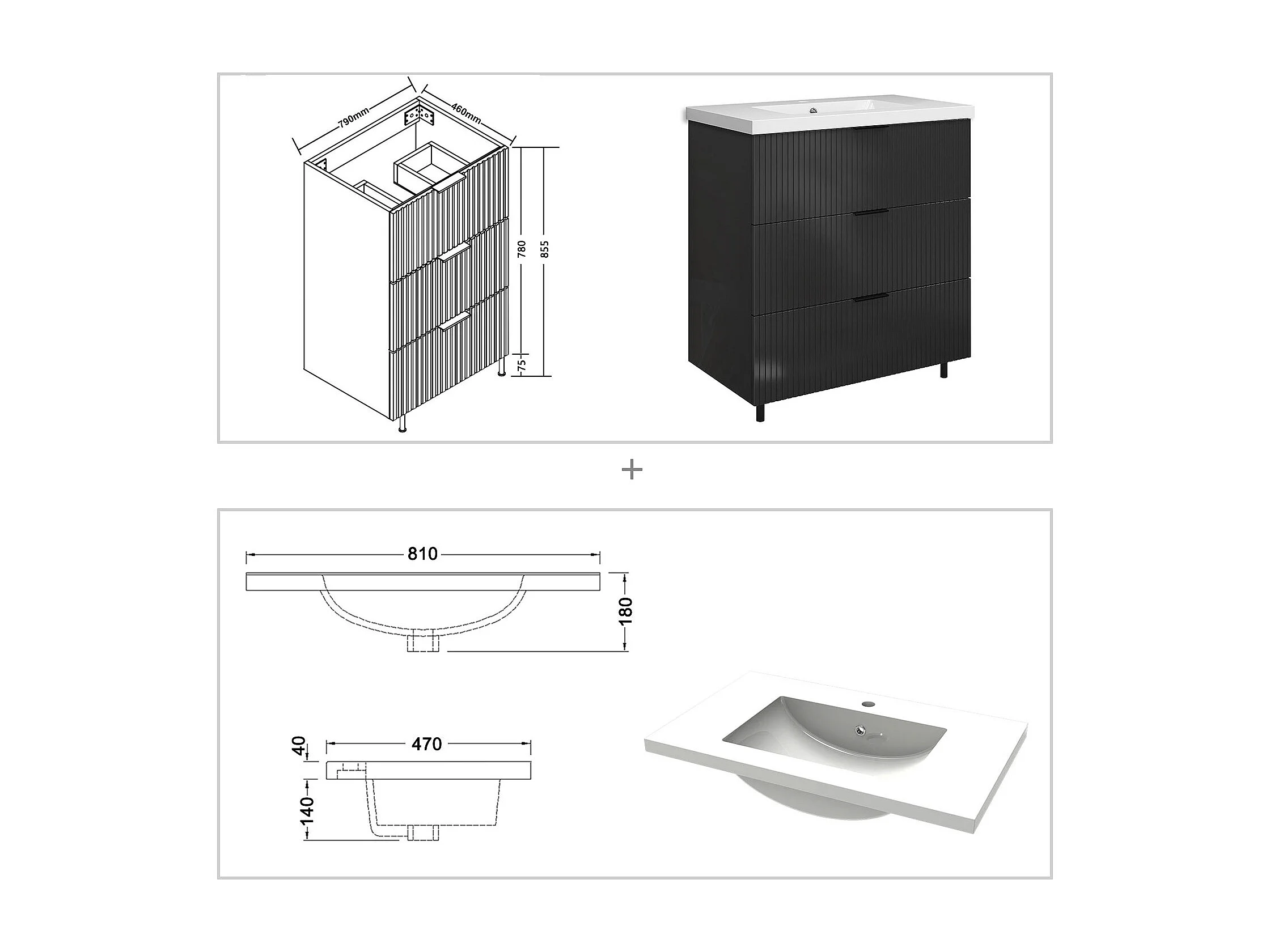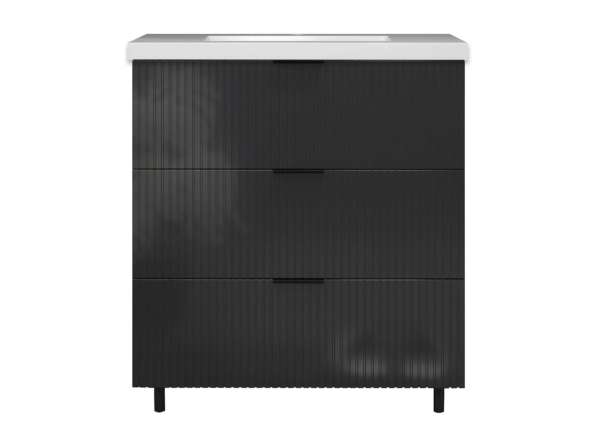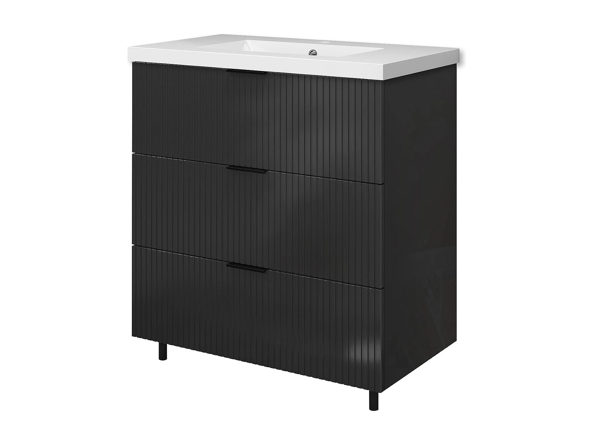 Meuble de salle de bain Strié Brillant, Meuble de sol 80cm avec simple vasque + 3 tiroirs, Anthracite
