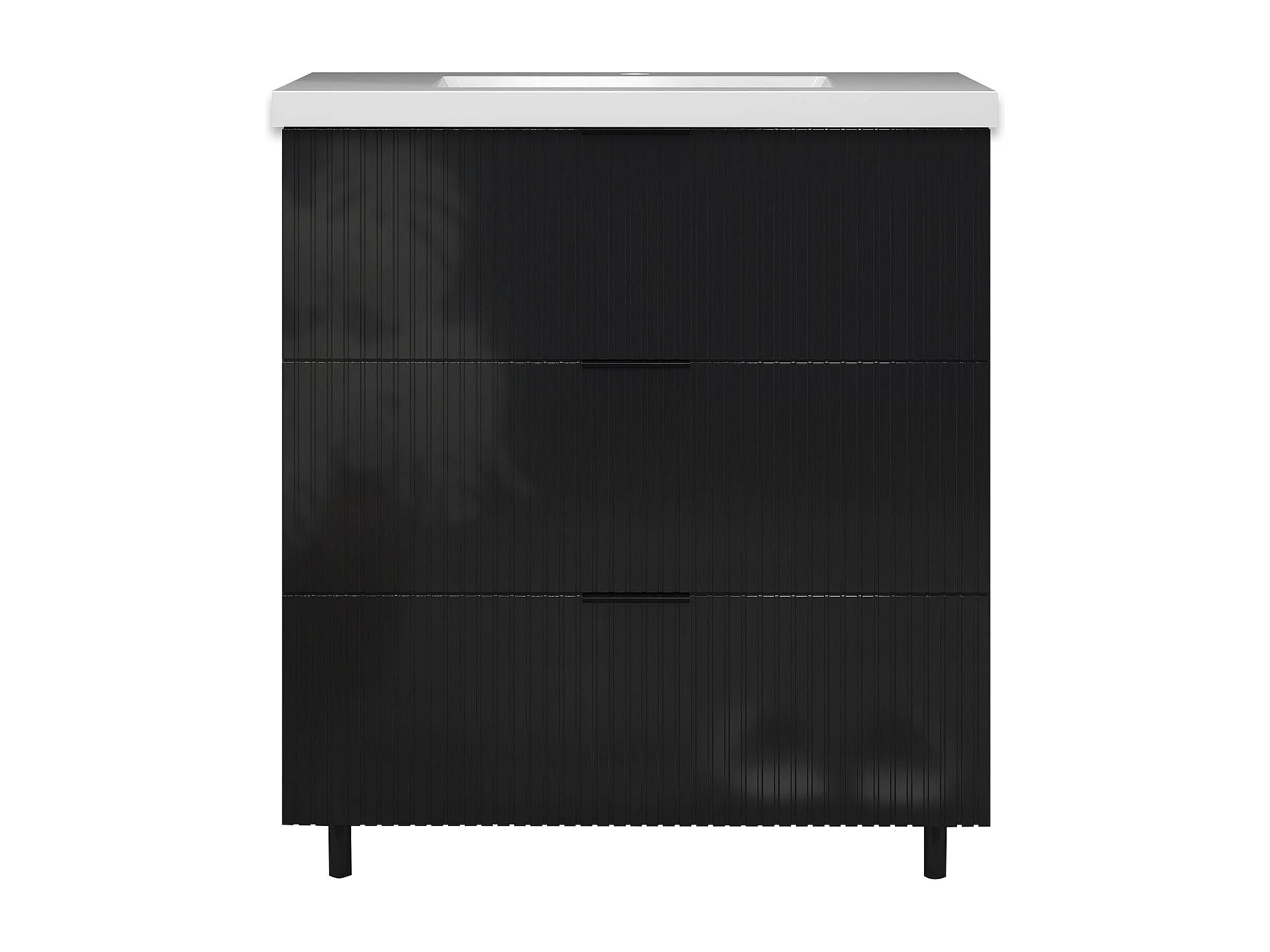 Meuble de salle de bain Strié Brillant, Meuble de sol 80cm avec simple vasque + 3 tiroirs, Noir