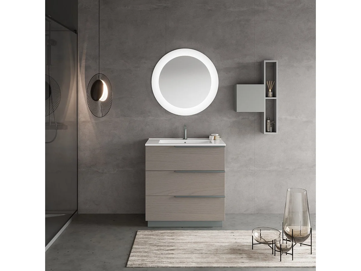 Meuble De Salle De Bain Sur Pied 80Cm Gris Cendre, Miroir Rond Led | New York