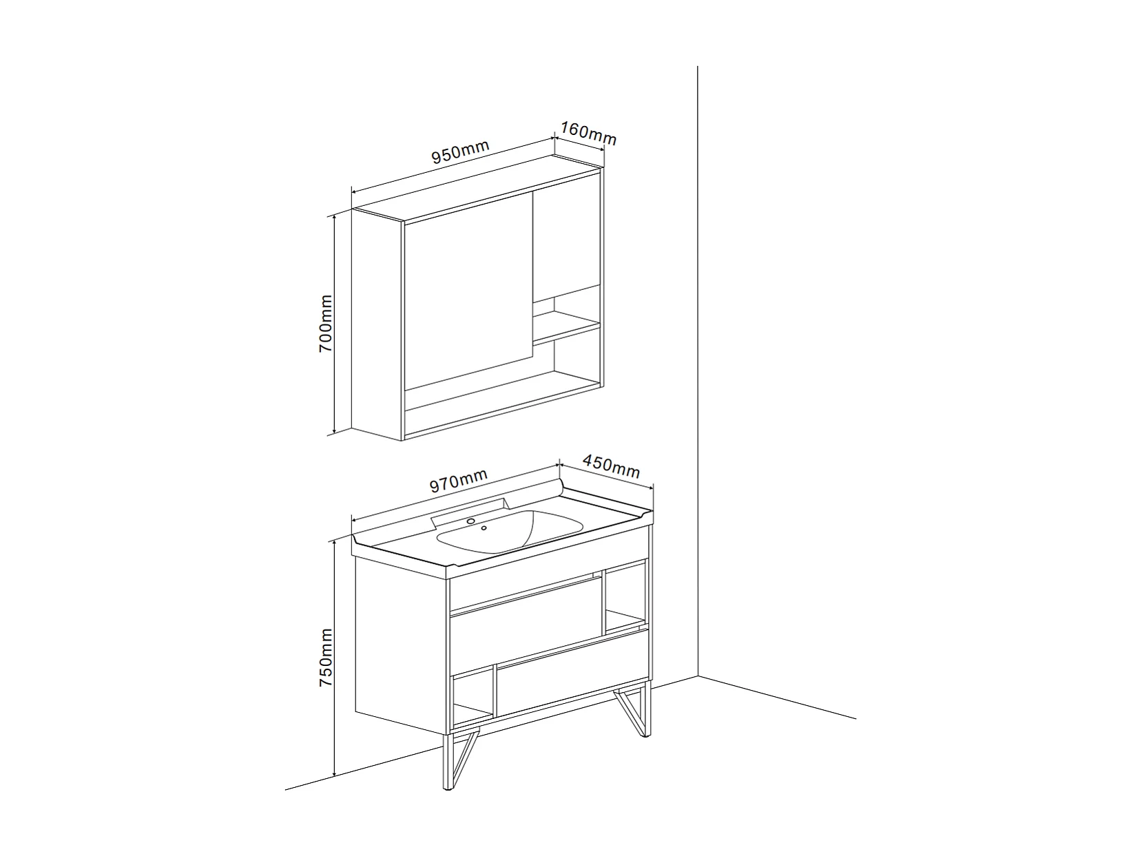 Meuble De Salle De Bain Sur Pieds 101Cm Avec Lavabo Style Industriel Miroir | Vienna