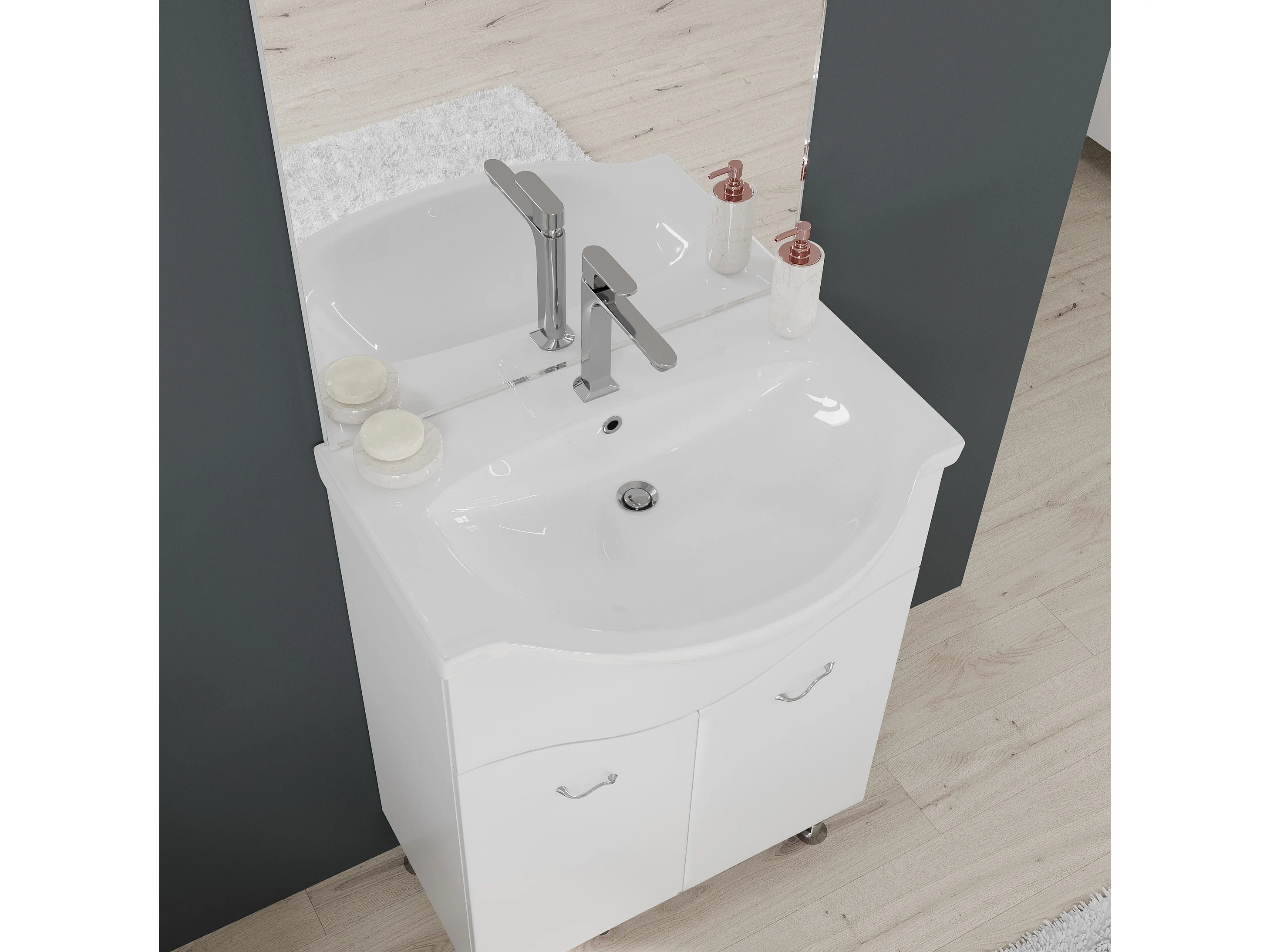 Meuble De Salle De Bain Sur Pieds 65Cm 2 Portes Blanc Brillant, Miroir Avec Led | Easy
