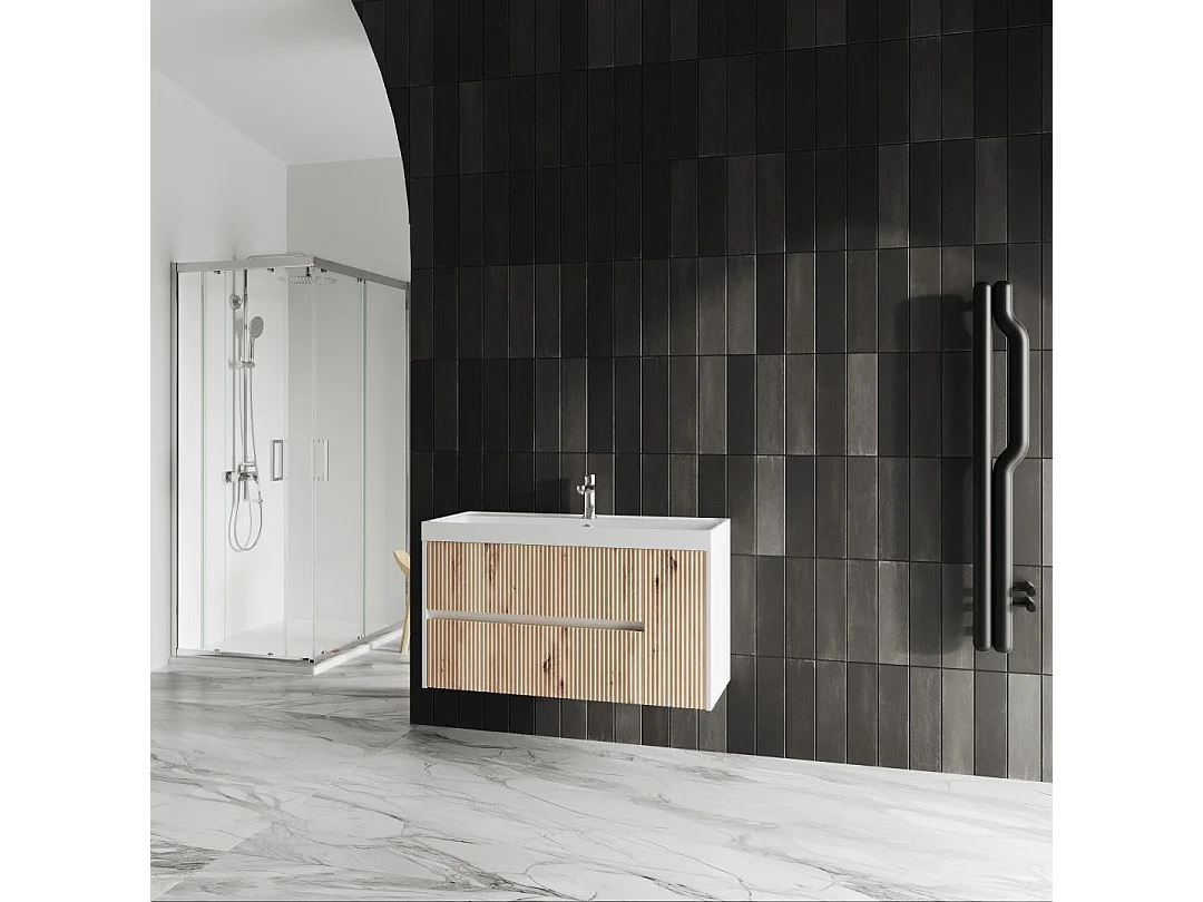 Meuble De Salle De Bain Suspendu 100Cm Chêne Doré Sans Miroir | Cortina