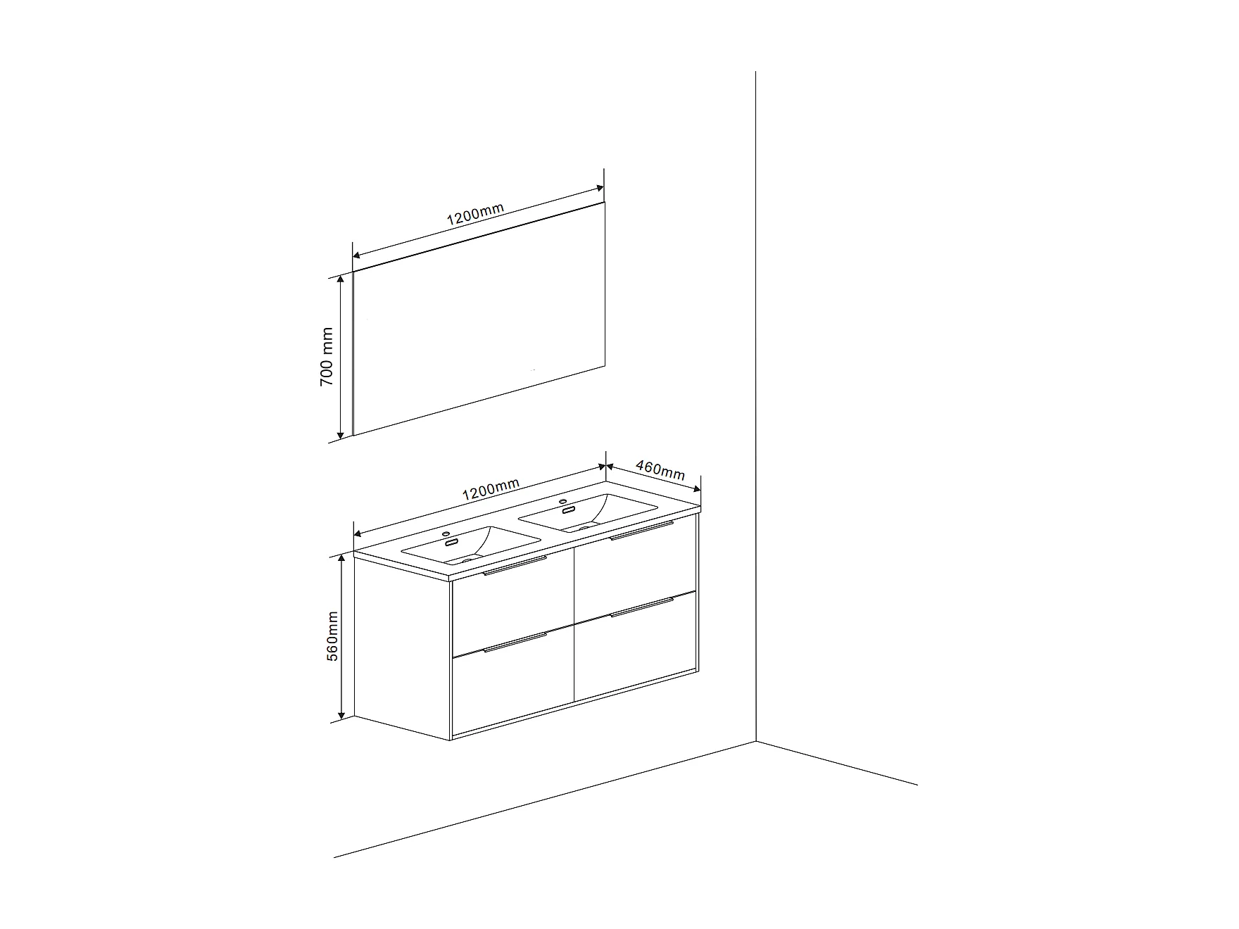 Meuble De Salle De Bain Suspendu 120Cm En Blanc Brillant Avec Poignée En Noir Mat | Parigi