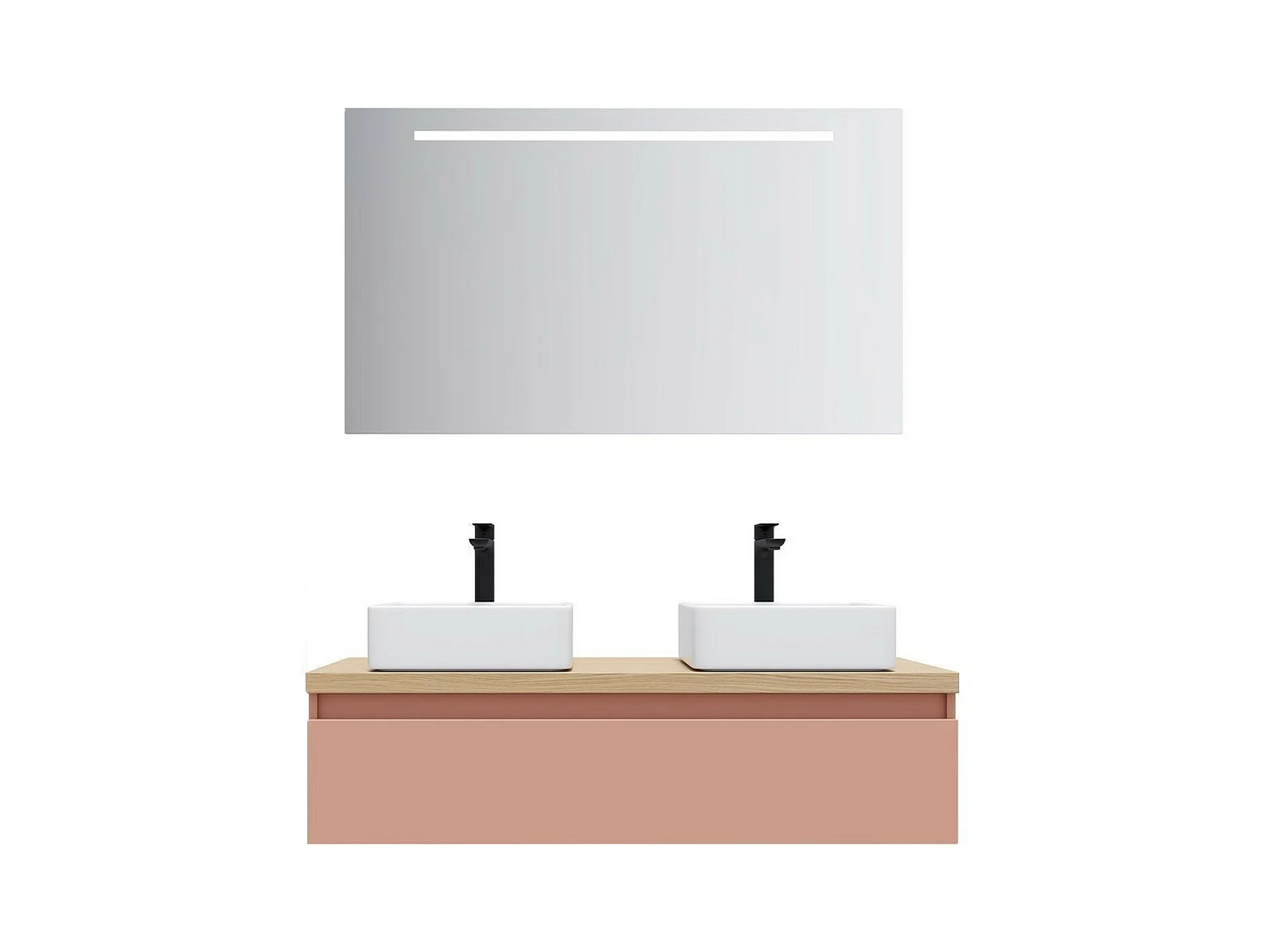Meuble de salle de bain suspendu 2 vasques à poser 120cm 1 tiroir Abricot + miroir - Hudson