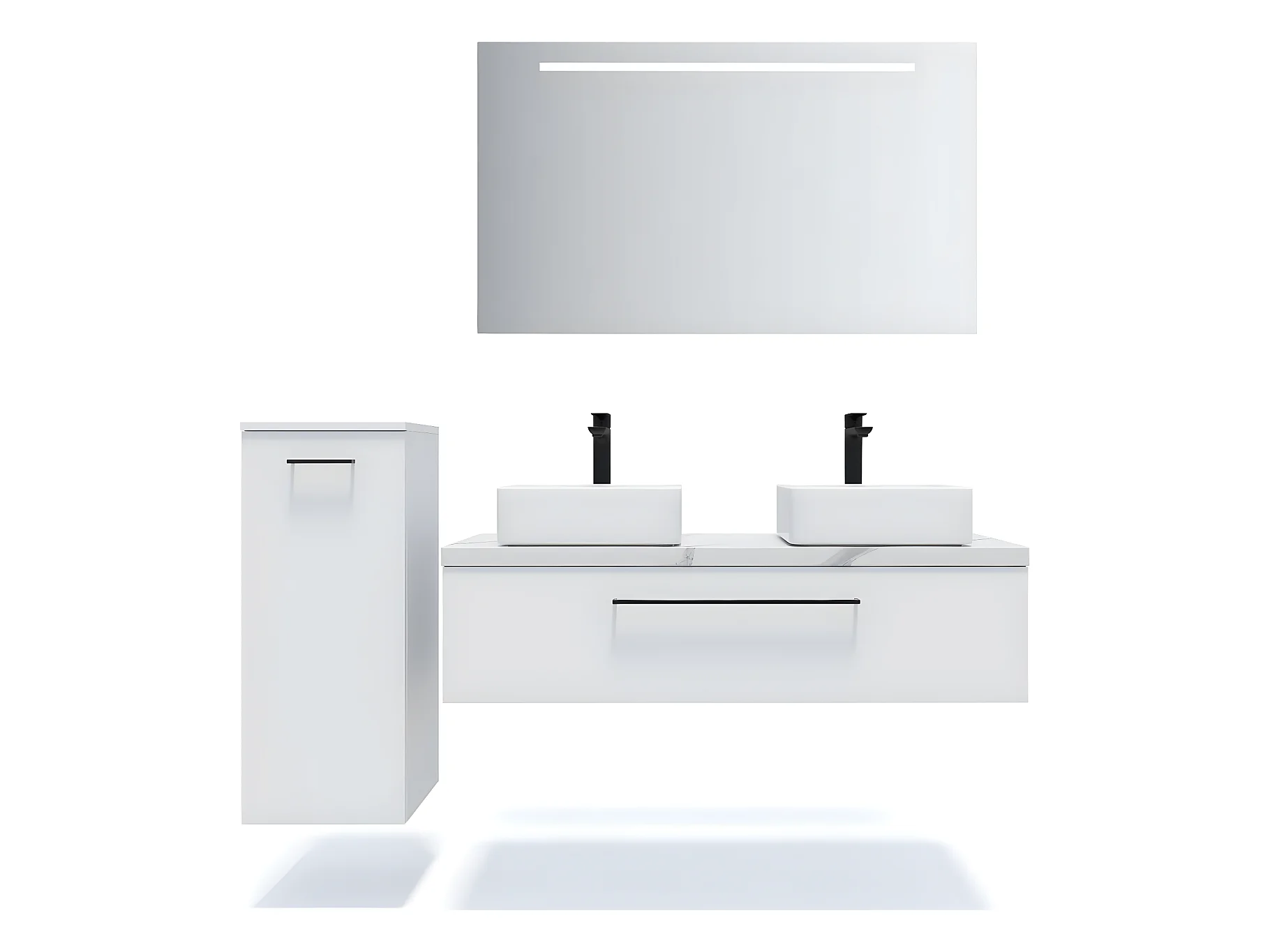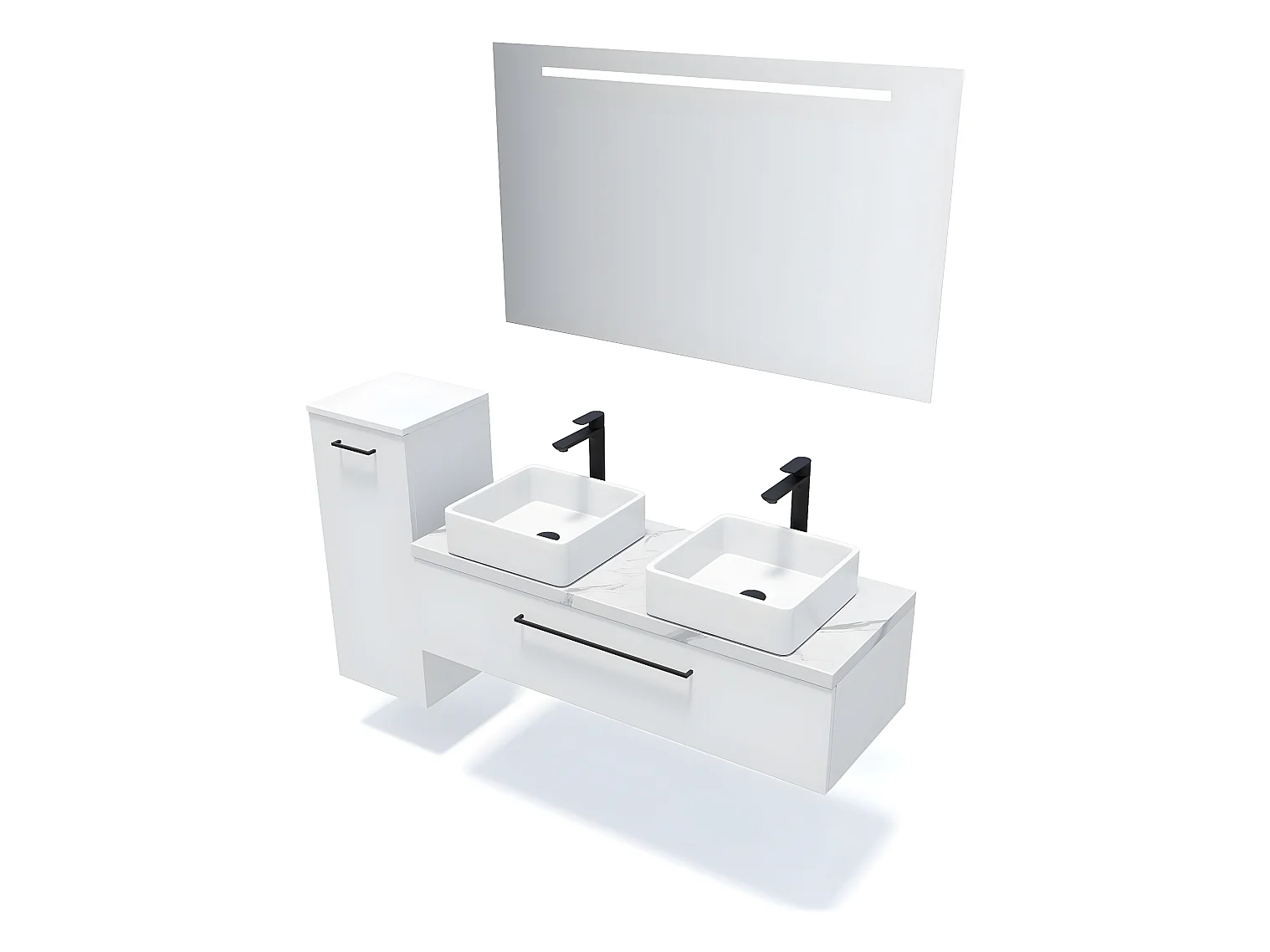 Meuble de salle de bain suspendu 2 vasques à poser 120cm 1 tiroir Blanc + miroir + colonne ouverture gauche - Glasgow