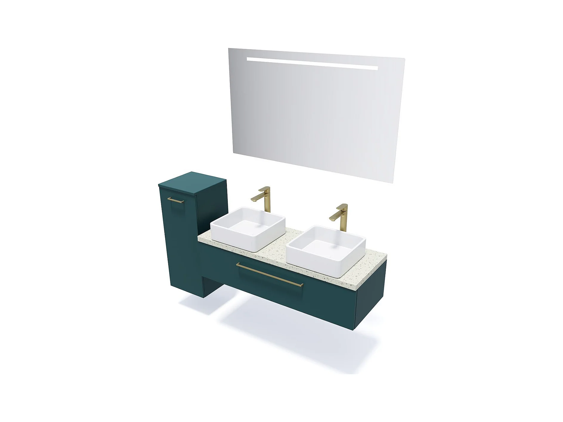 Meuble de salle de bain suspendu 2 vasques à poser 120cm 1 tiroir Bleu - Glasgow