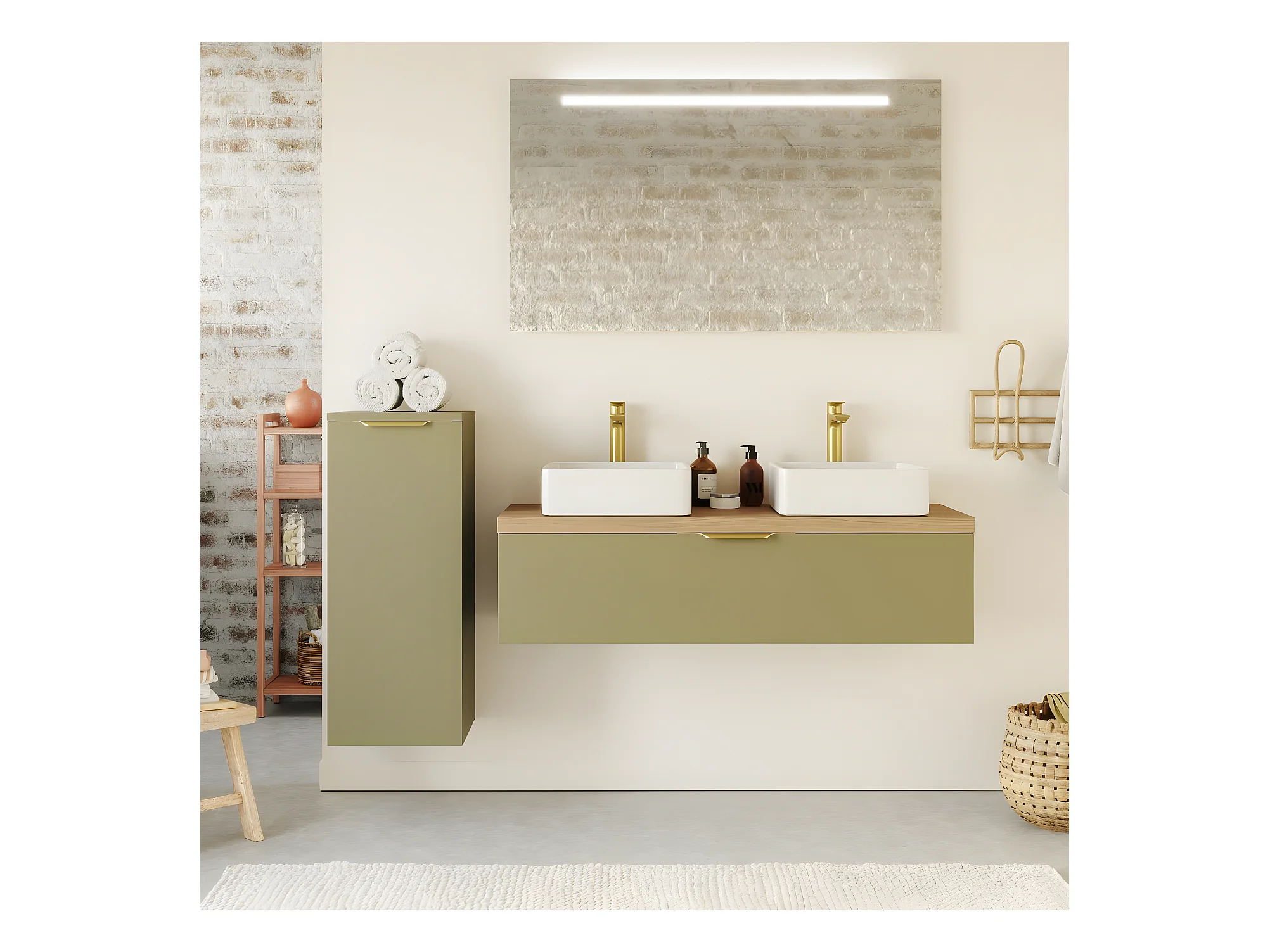Meuble de salle de bain suspendu 2 vasques à poser 120cm 1 tiroir Vert olive - Venice