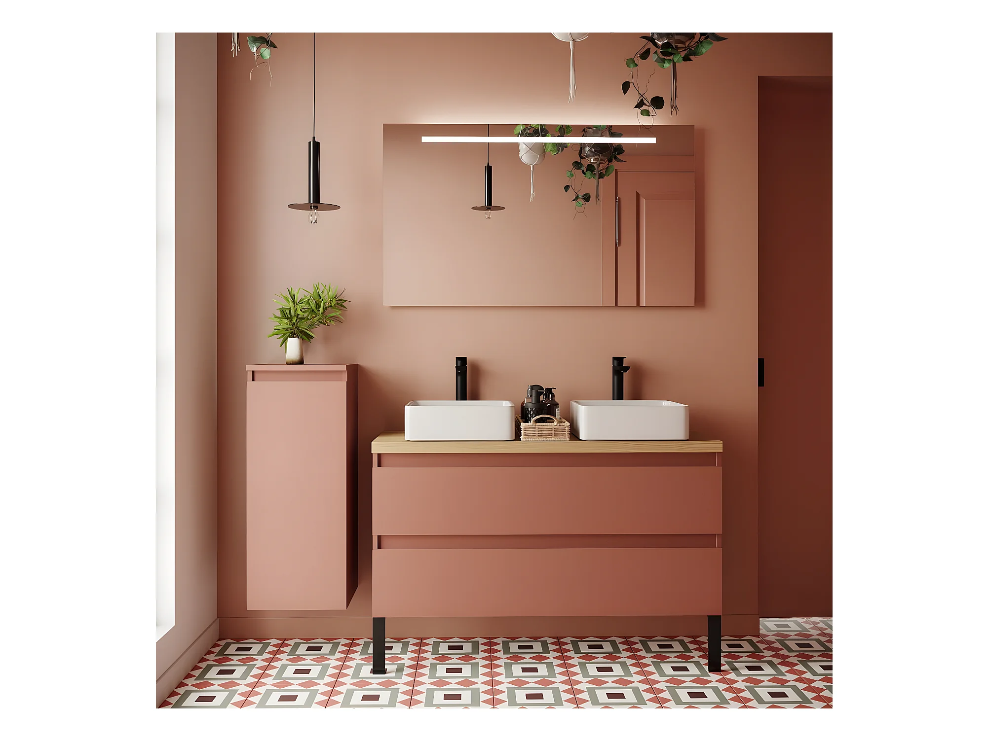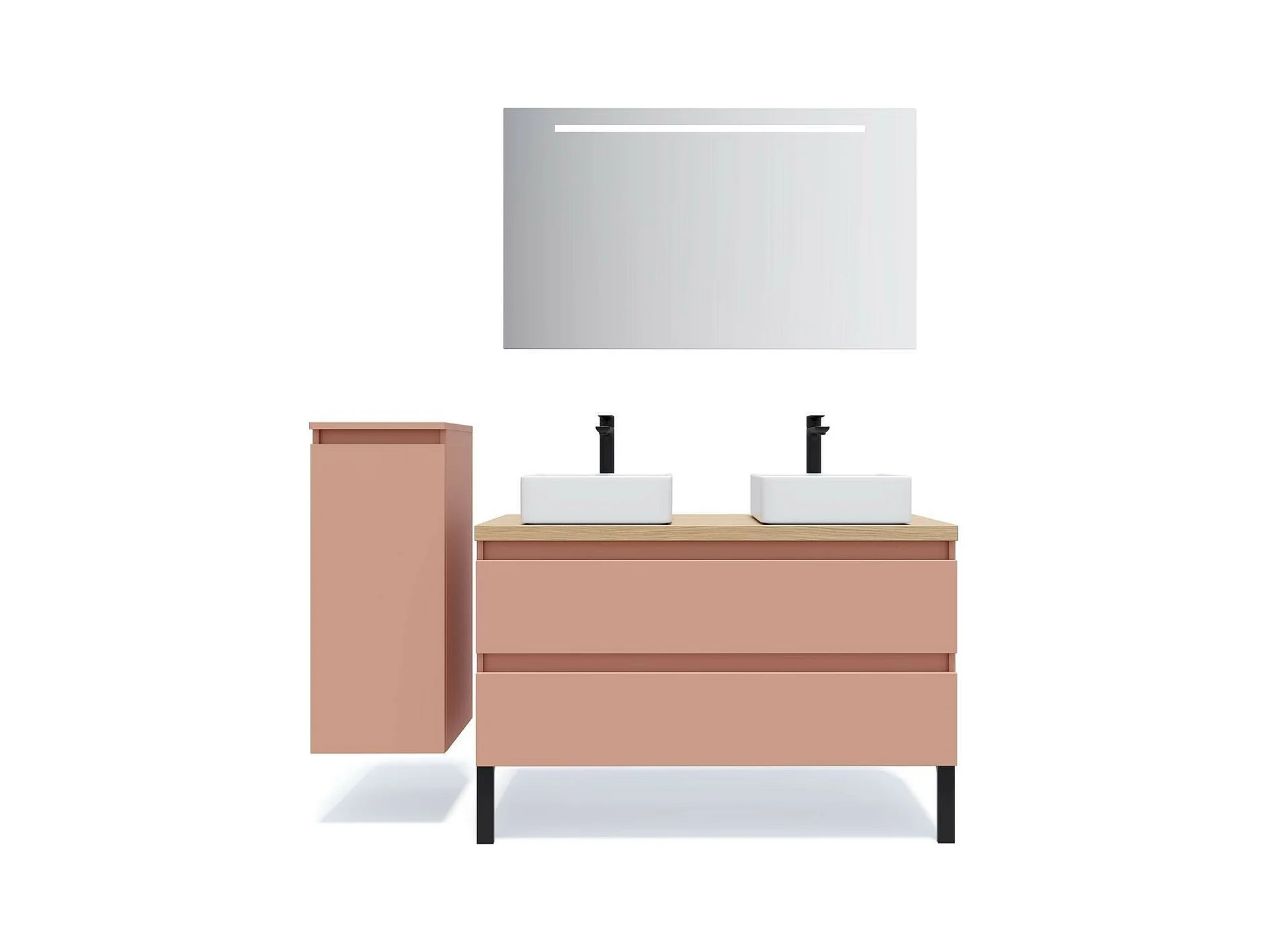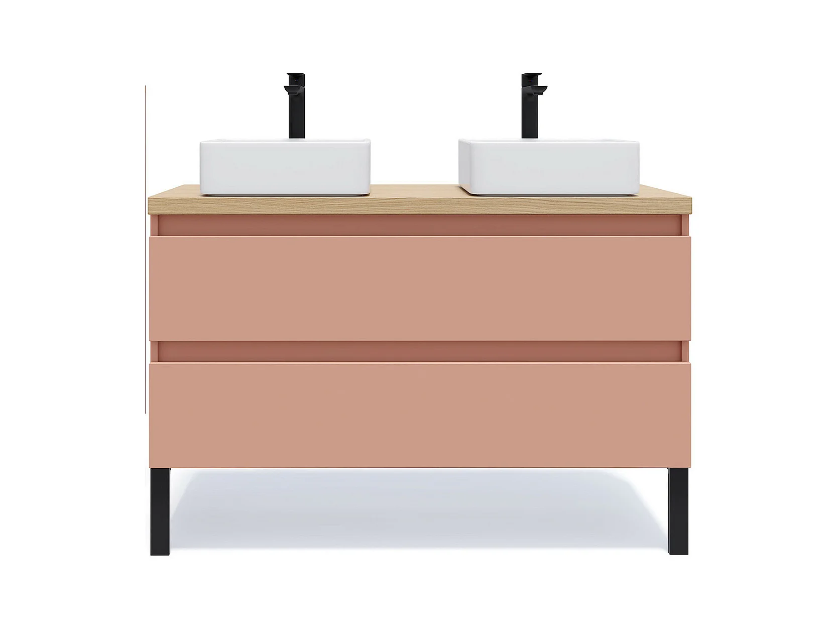 Meuble de salle de bain suspendu 2 vasques à poser 120cm 2 tiroirs Abricot - Hudson