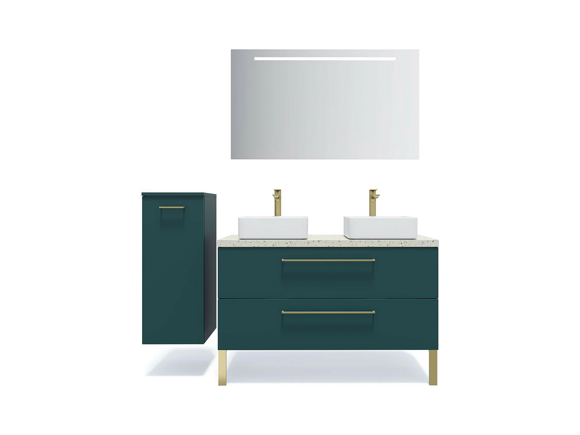 Meuble de salle de bain suspendu 2 vasques à poser 120cm 2 tiroirs Bleu - Glasgow