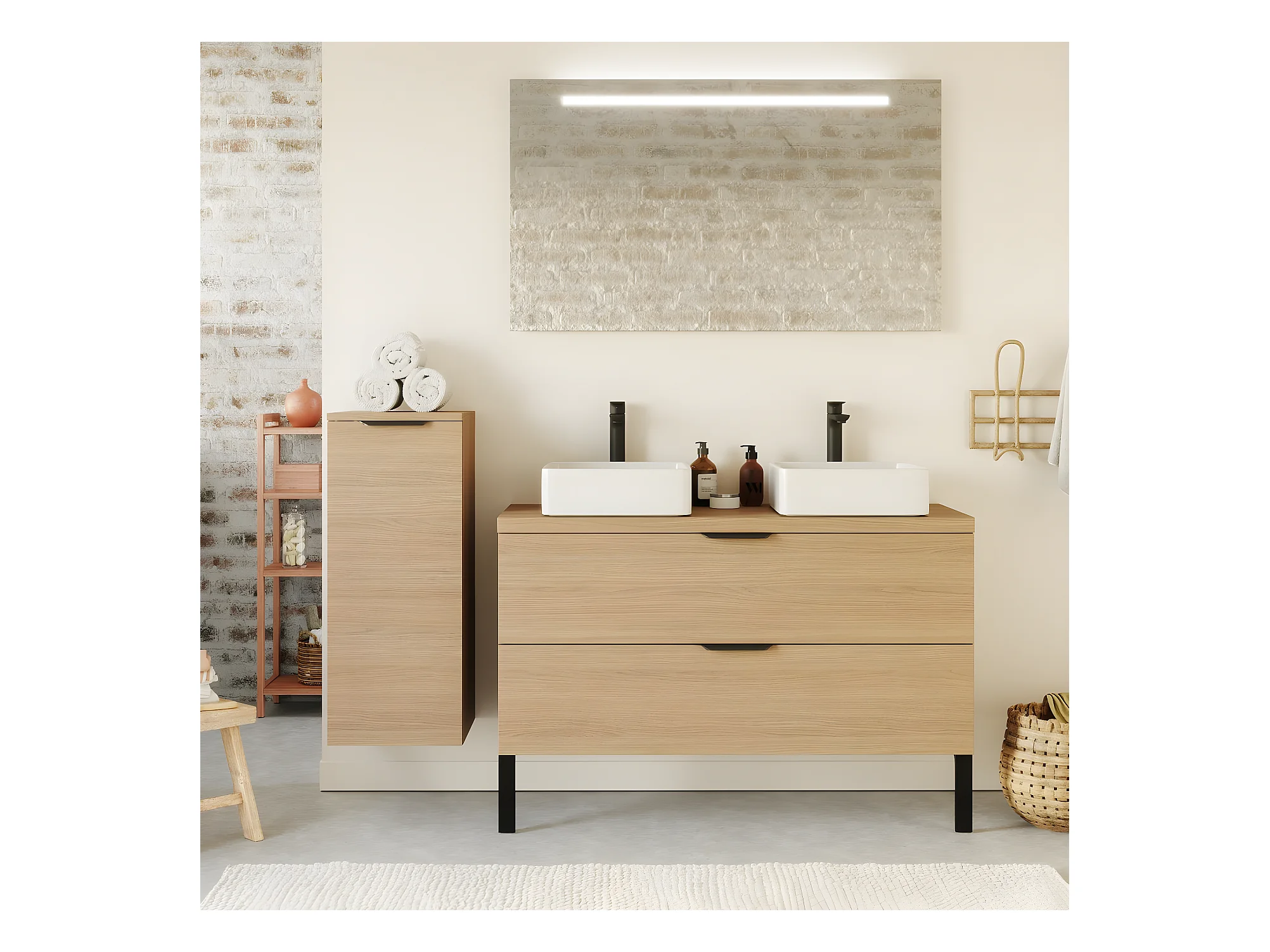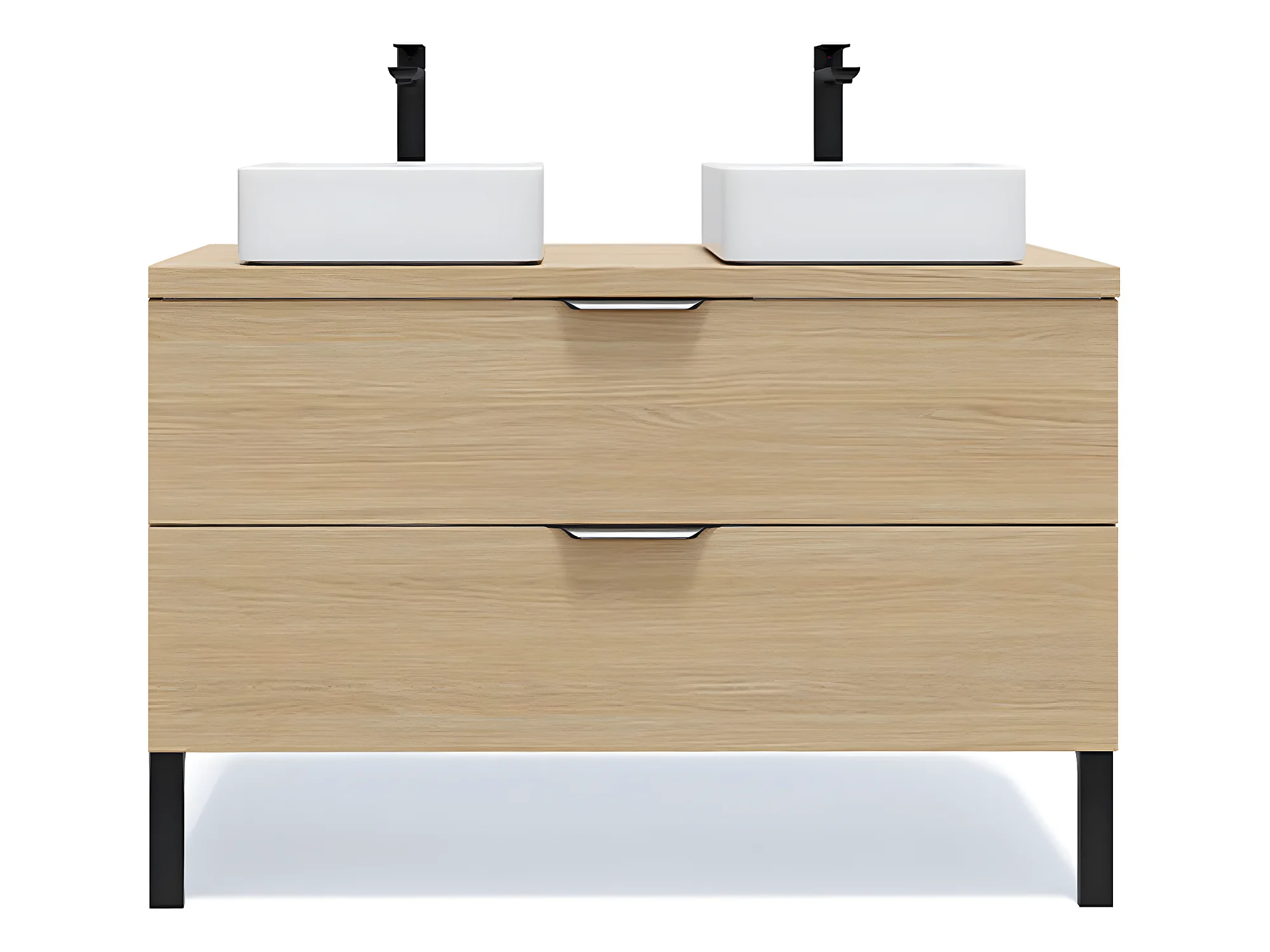 Meuble de salle de bain suspendu 2 vasques à poser 120cm 2 tiroirs Chêne clair - Venice