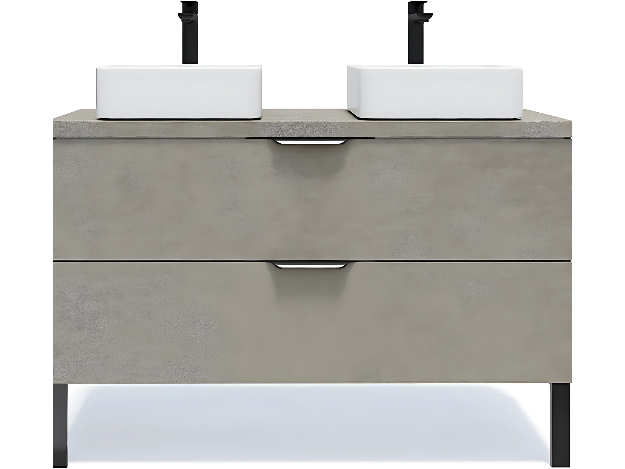 Meuble de salle de bain suspendu 2 vasques à poser 120cm 2 tiroirs façon Béton - Venice