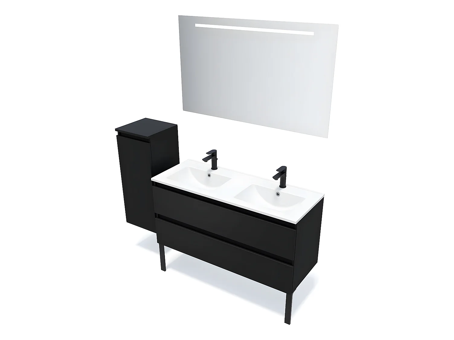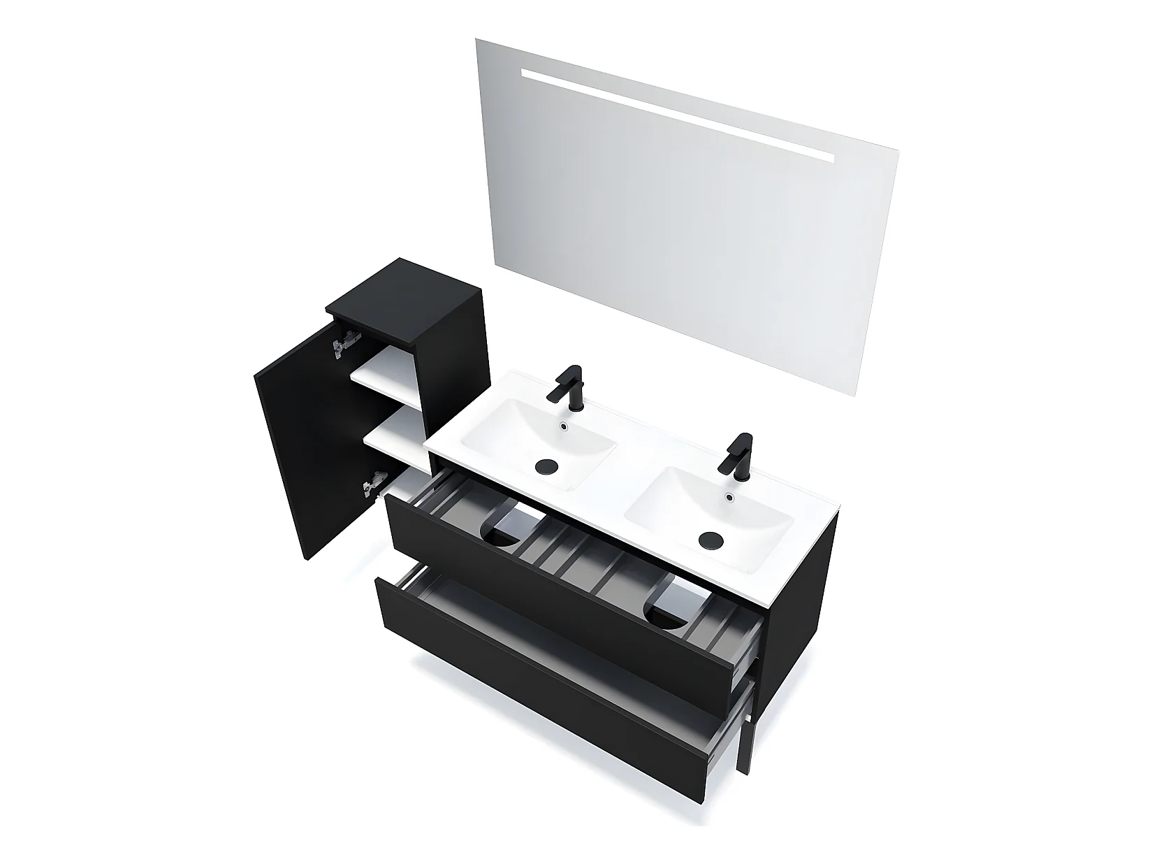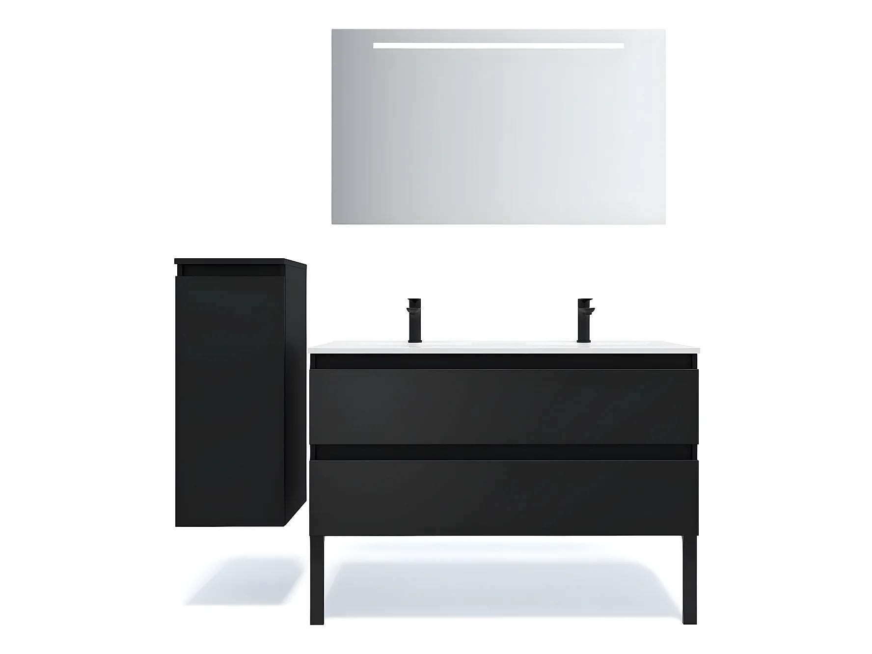 Meuble de salle de bain suspendu 2 vasques à poser 120cm 2 tiroirs Noir + miroir + colonne ouverture gauche - Hudson