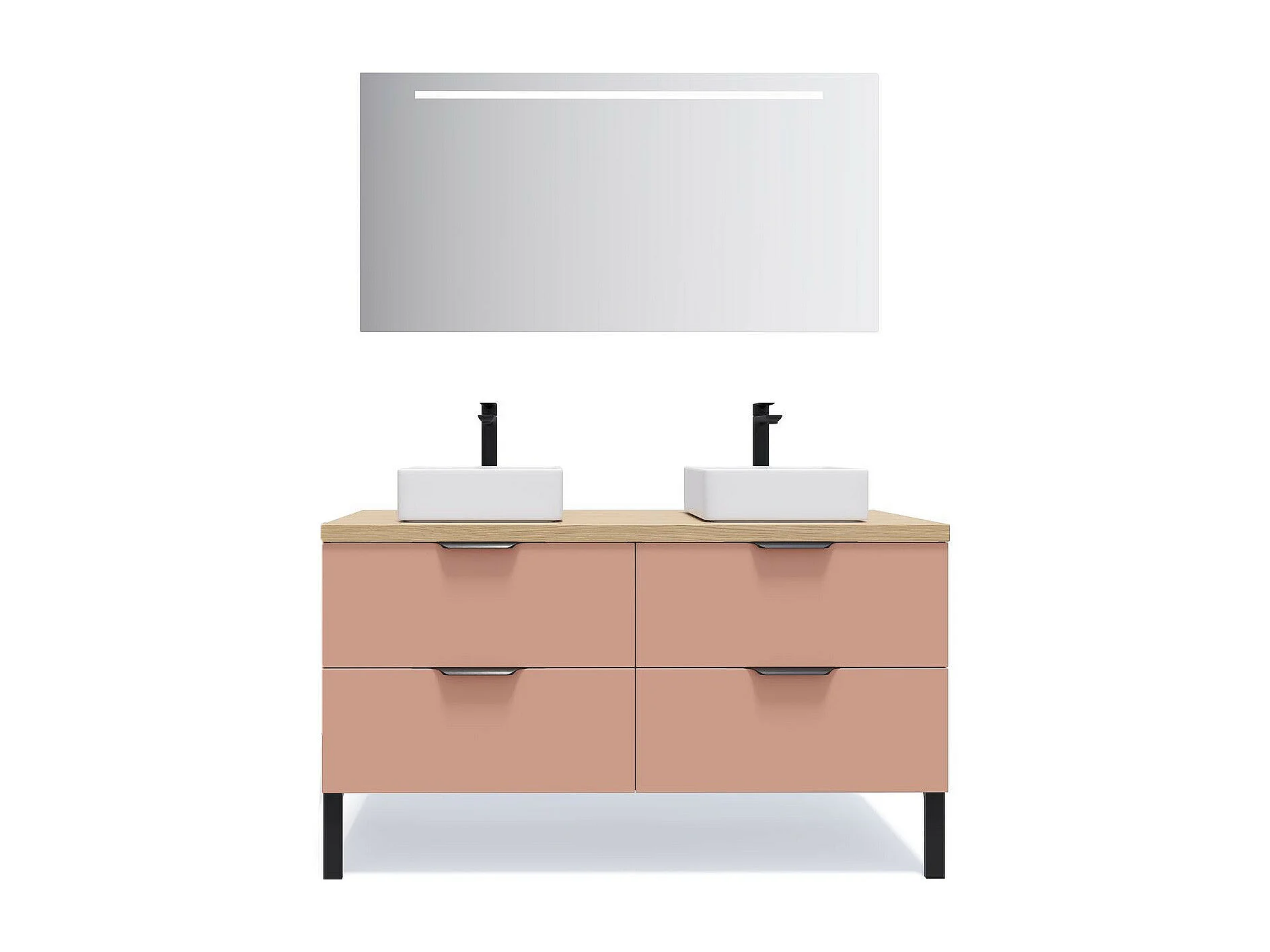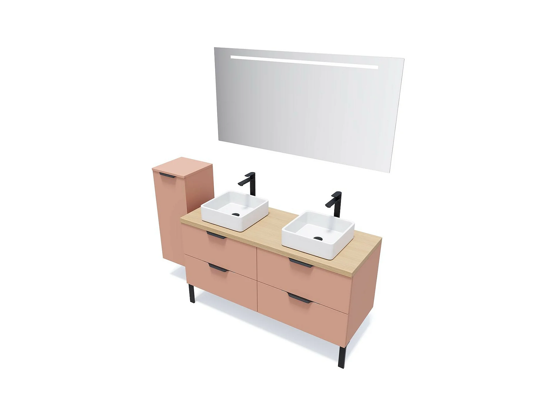 Meuble de salle de bain suspendu 2 vasques à poser 140cm 4 tiroirs Abricot + miroir - Soho