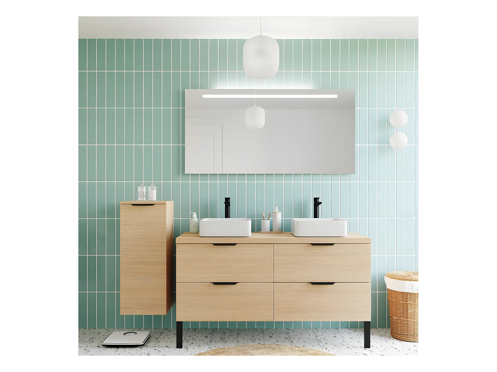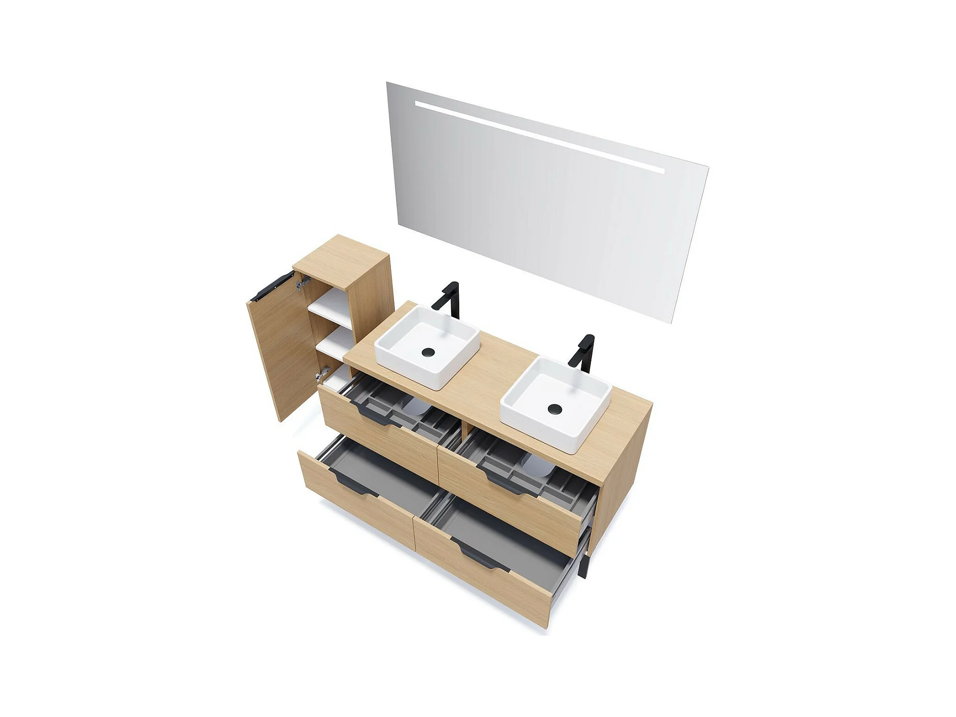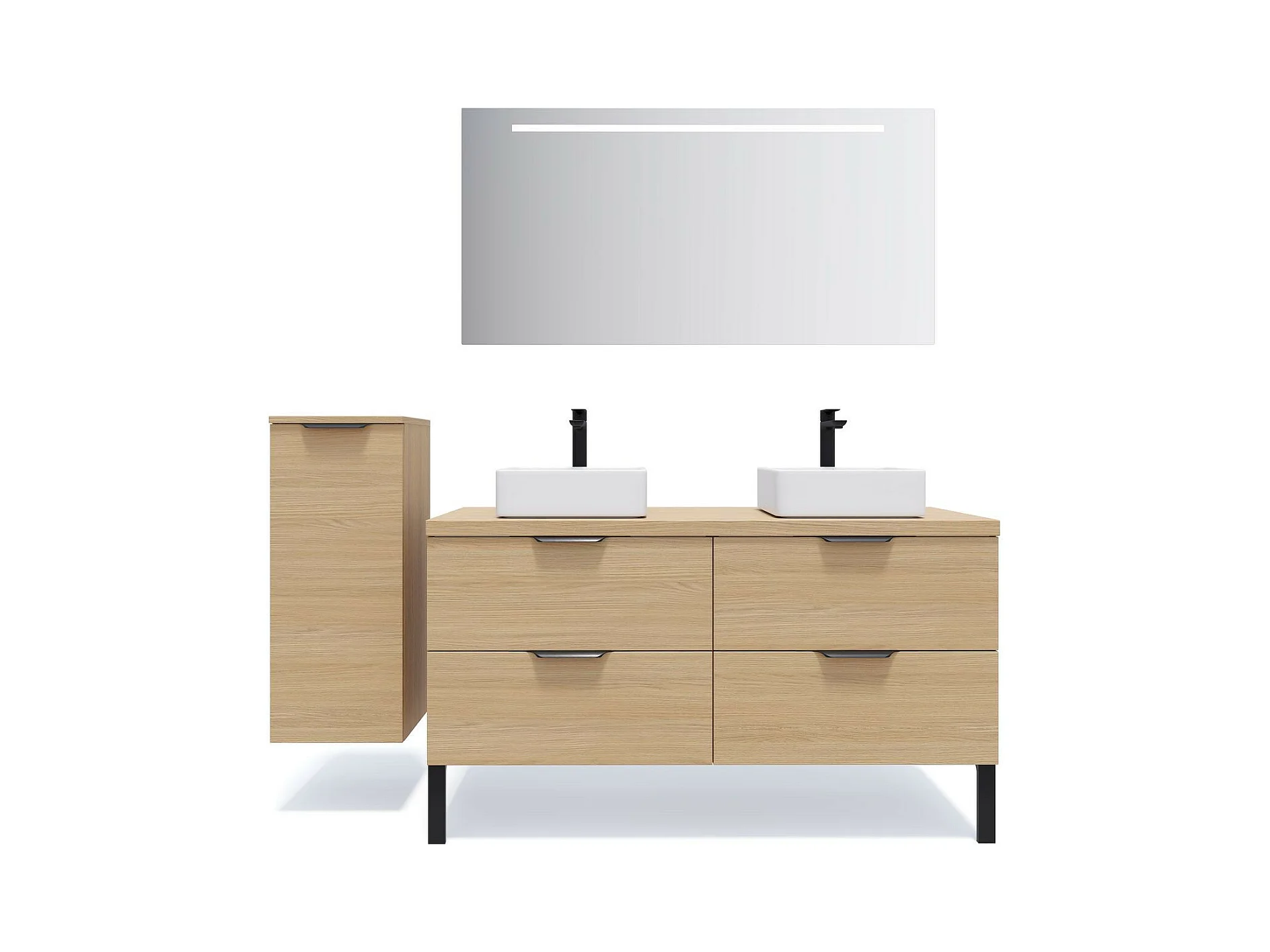 Meuble de salle de bain suspendu 2 vasques à poser 140cm 4 tiroirs Chêne clair - Soho