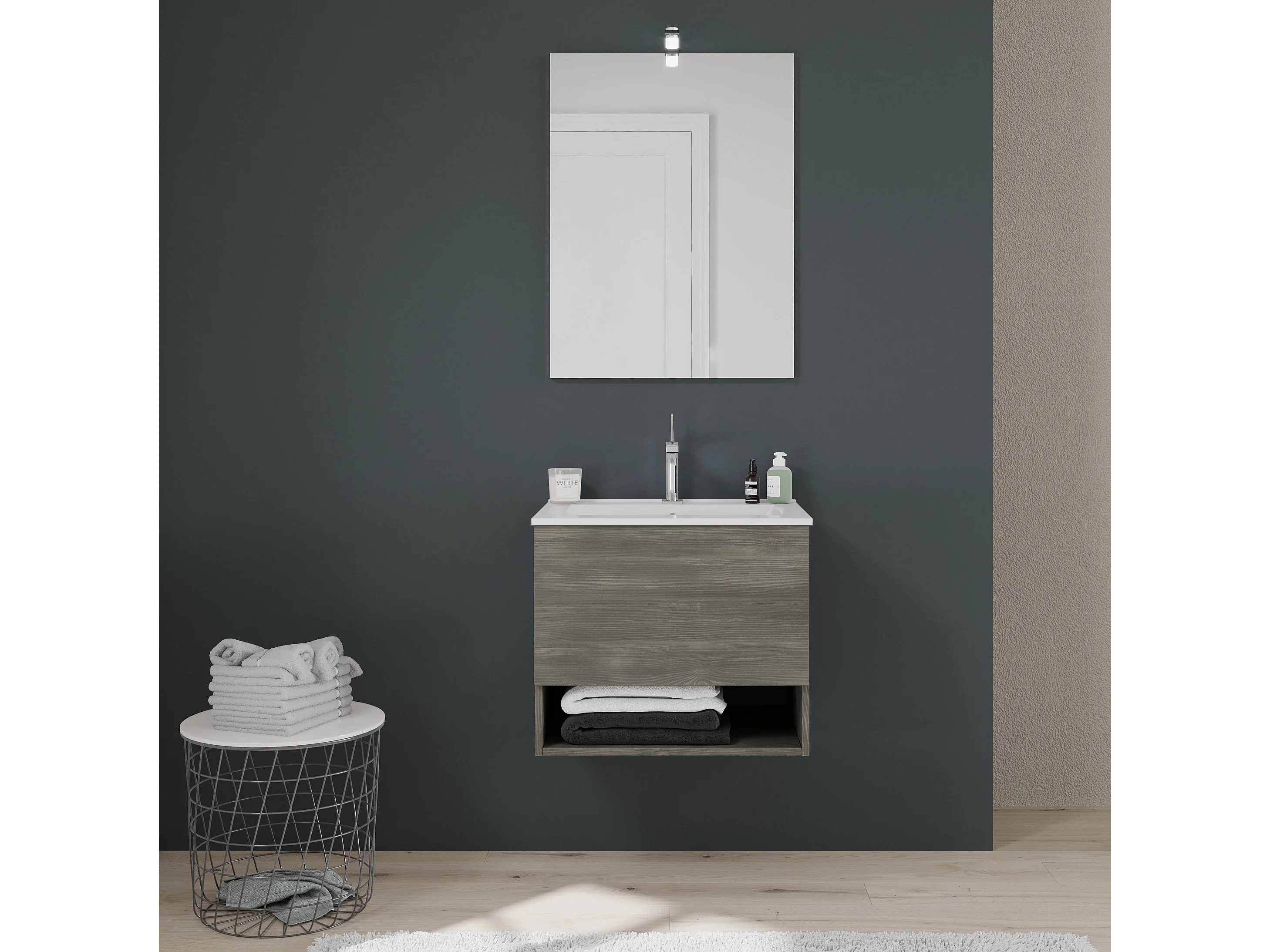 Meuble De Salle De Bain Suspendu 60Cm, Tiroir+Compartiment Ouvert En Gris Foncé | Venezia