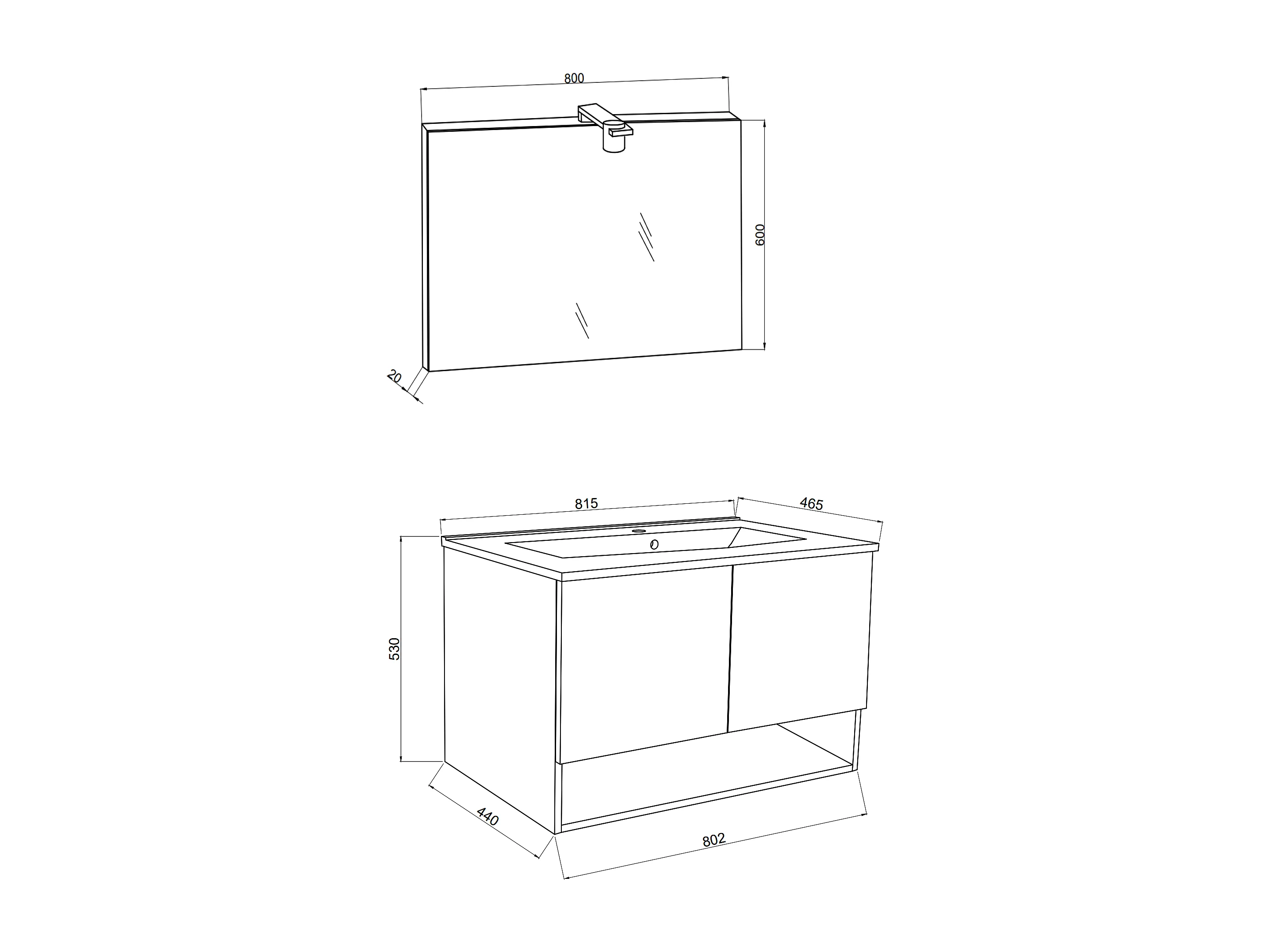 Meuble De Salle De Bain Suspendu 80Cm Avec Portes Et Compartiment Ouvert En Chêne Gris | Venezia
