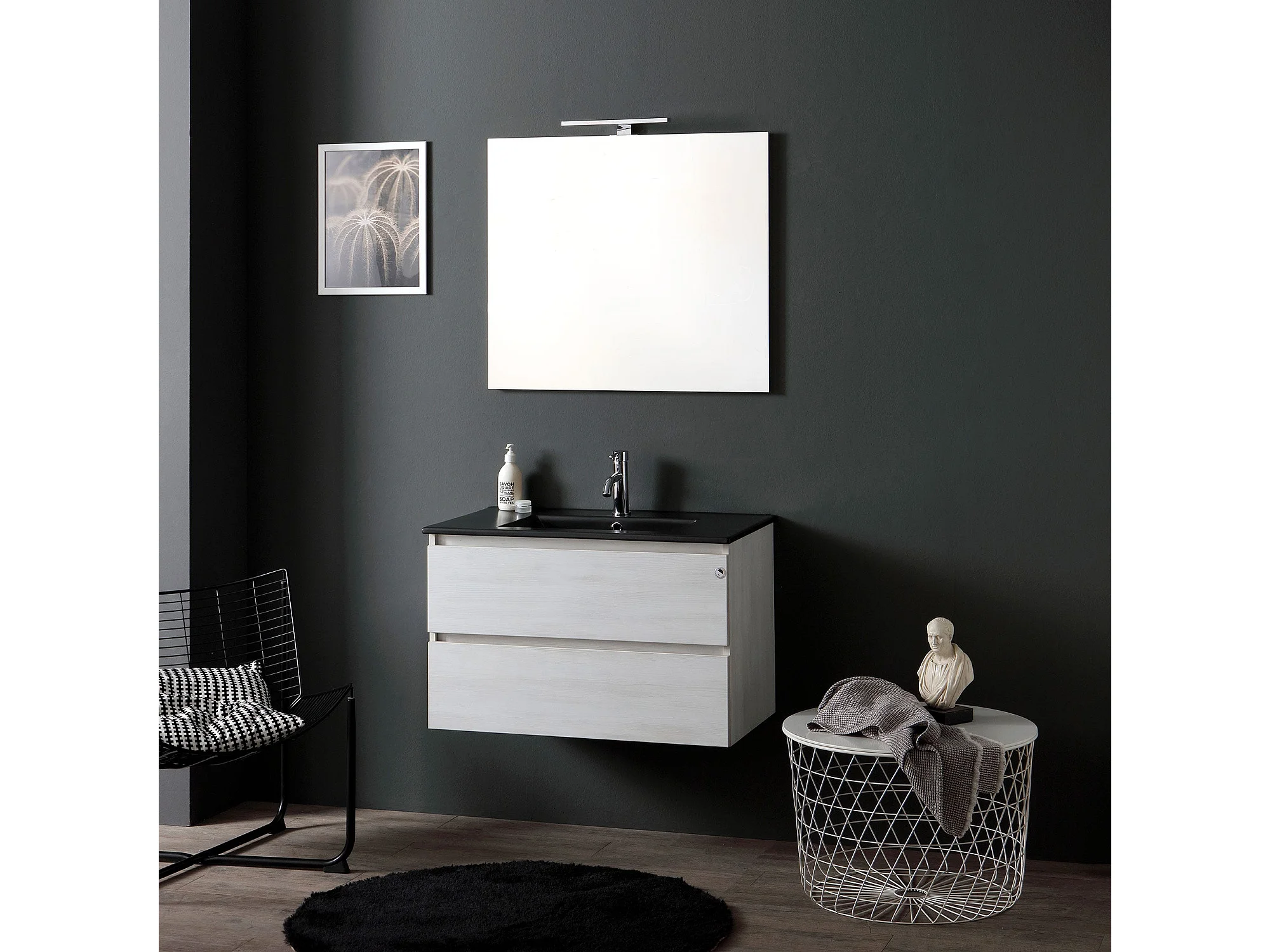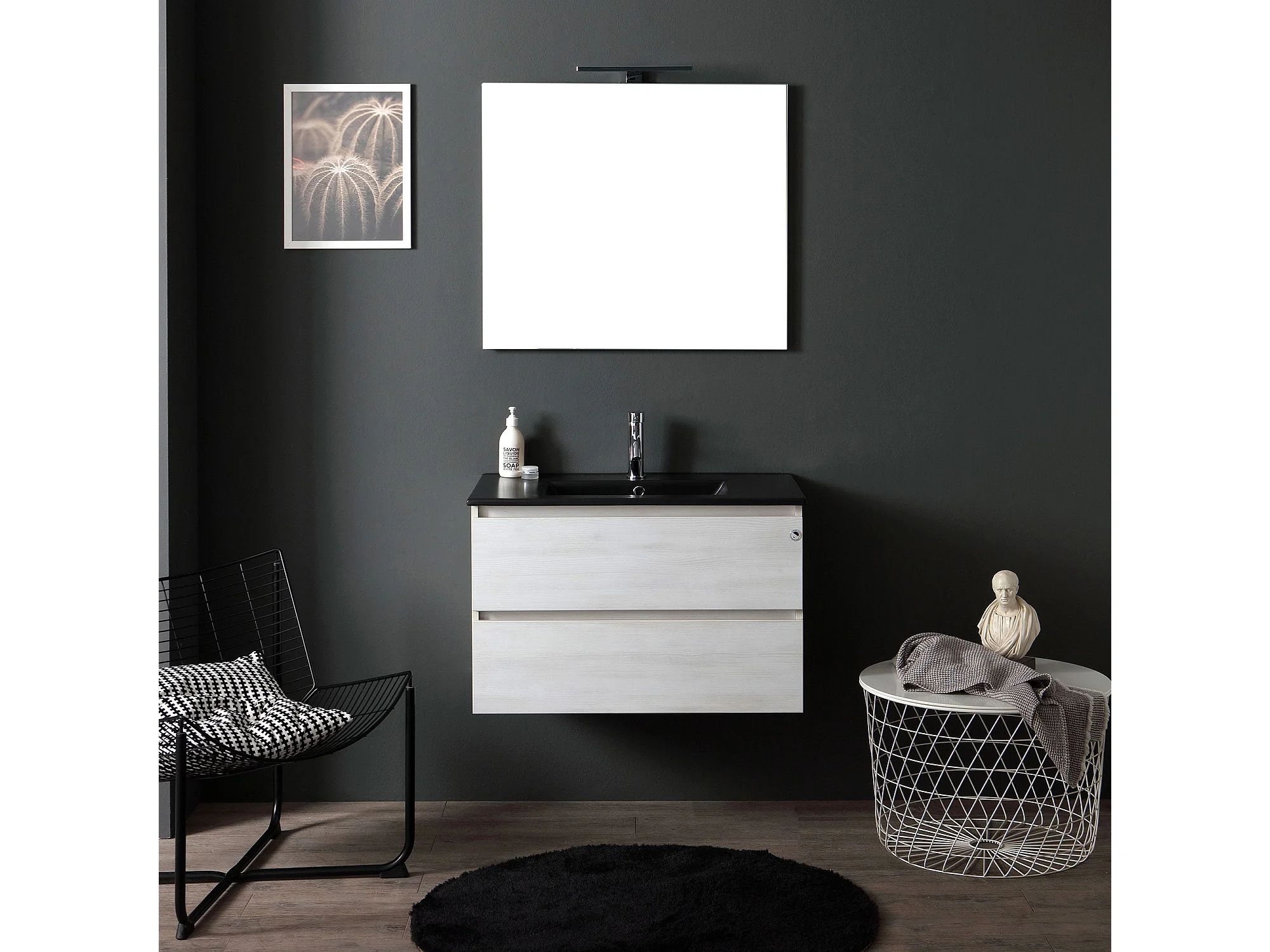Meuble De Salle De Bain Suspendu 80Cm Blanc Avec Lavabo Noir Mat | Berlin