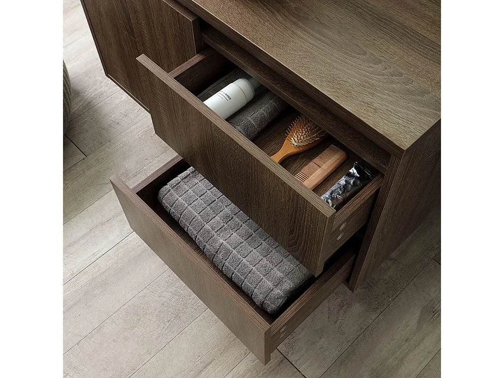 Meuble De Salle De Bain Suspendu 90Cm Noyer Foncé, Lavabo D'appui, Miroir | Siena