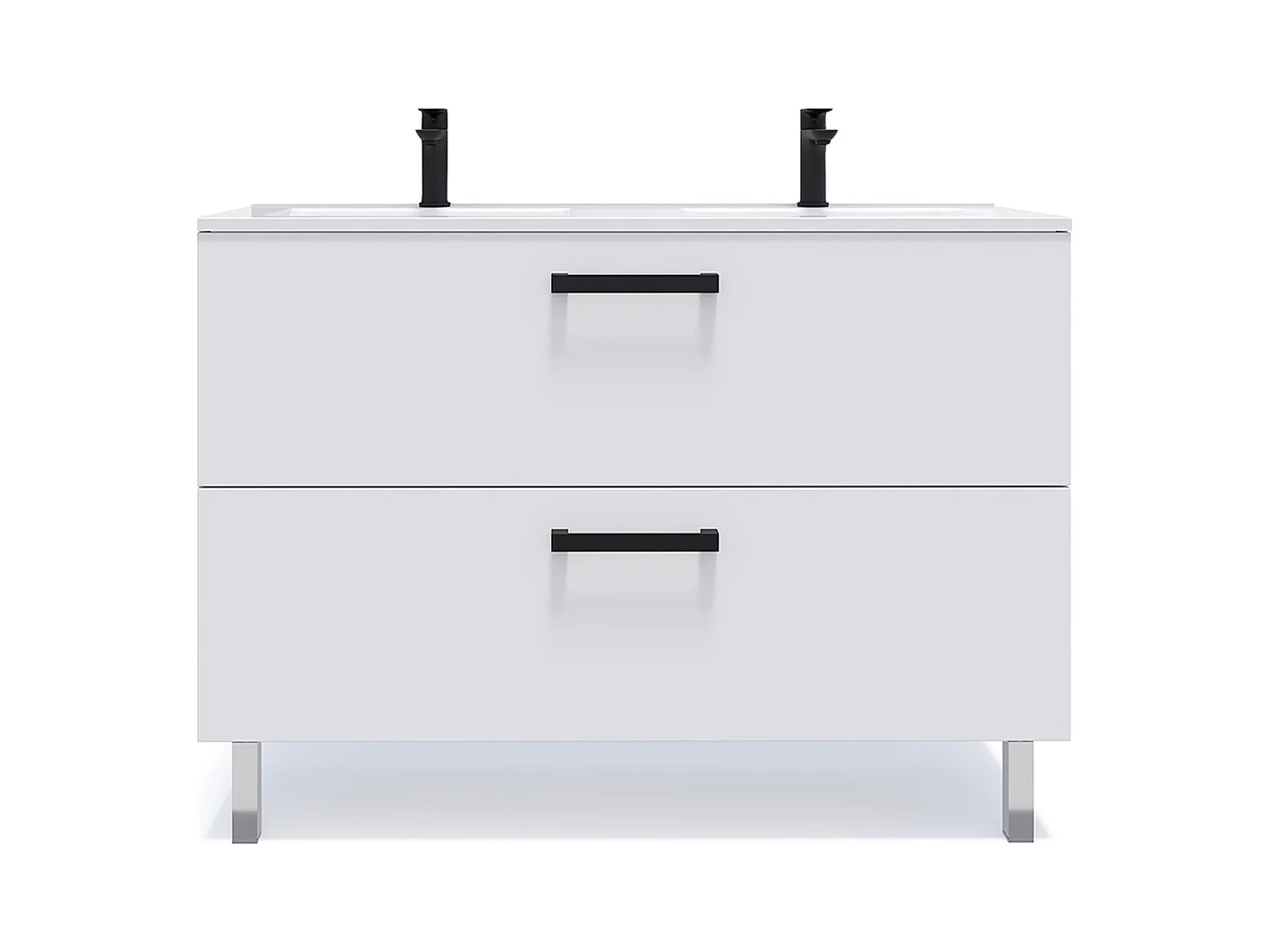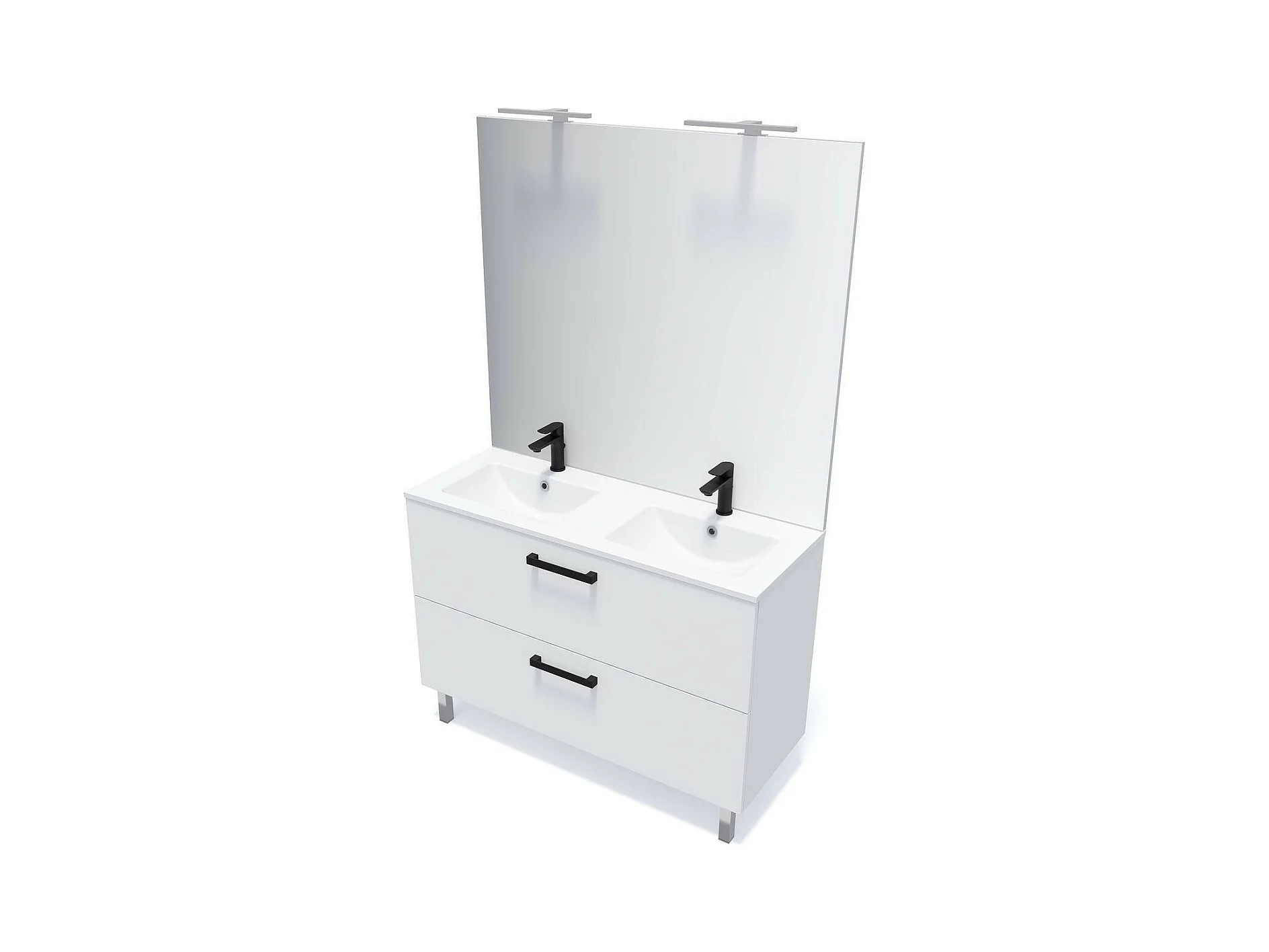 Meuble de salle de bain suspendu avec pieds double vasque intégrée 120cm 2 tiroirs Blanc - Chelsea