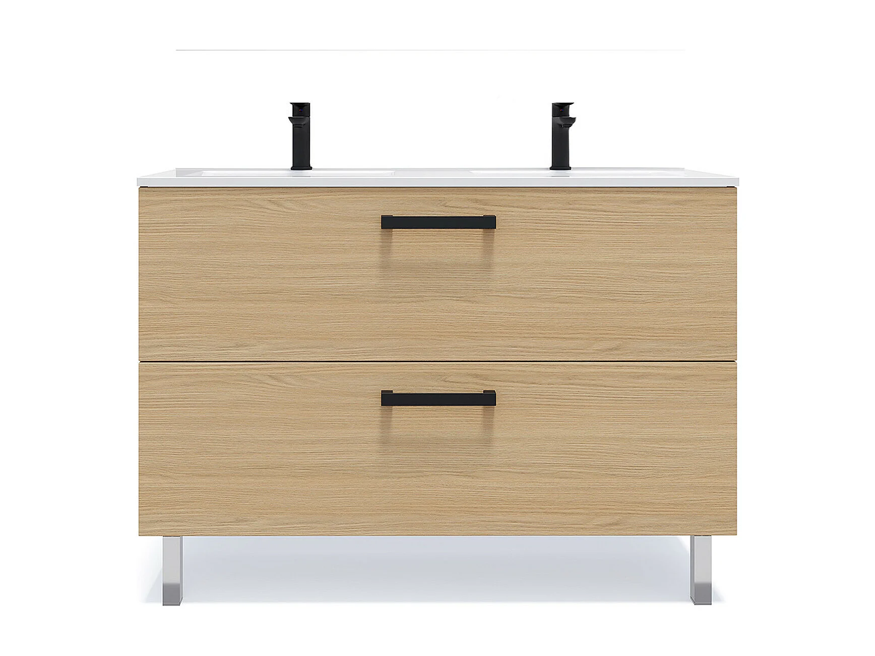 Meuble de salle de bain suspendu avec pieds double vasque intégrée 120cm 2 tiroirs Chêne clair - Chelsea
