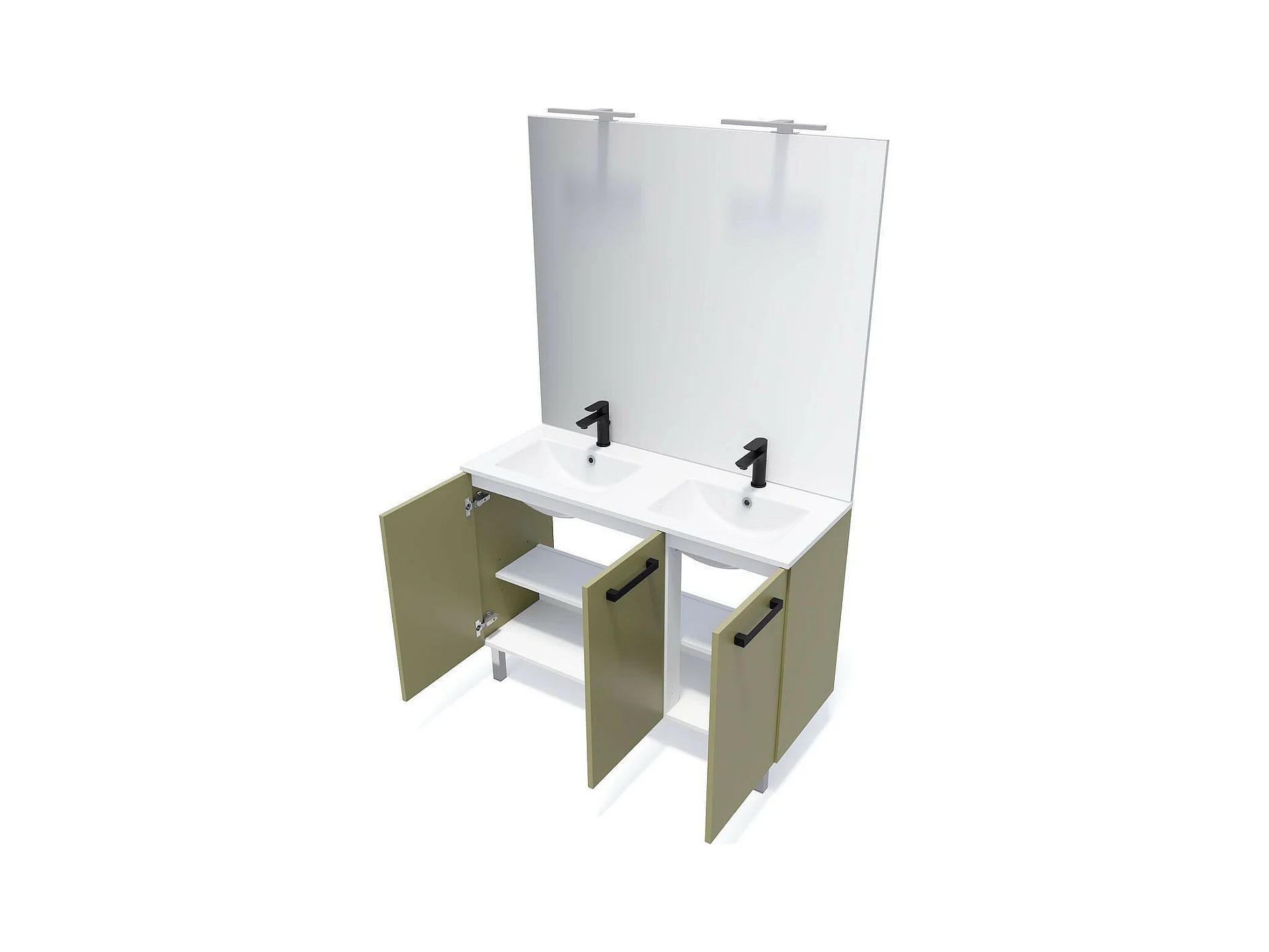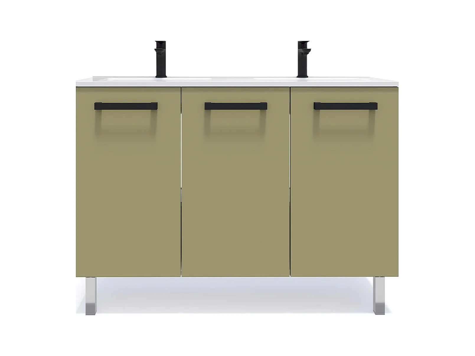 Meuble de salle de bain suspendu avec pieds double vasque intégrée 120cm 3 portes Vert olive - Chelsea