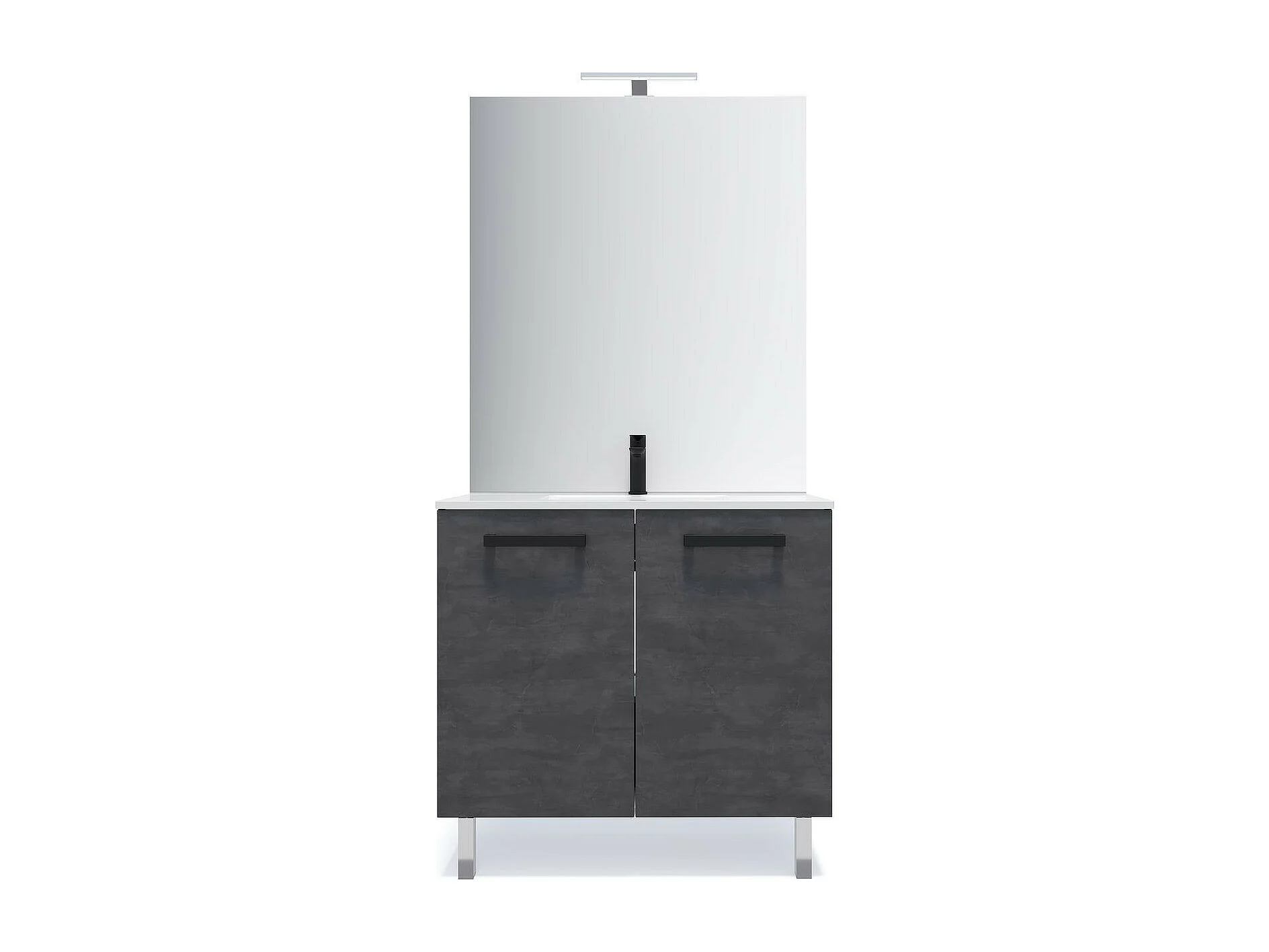 Meuble de salle de bain suspendu avec pieds vasque intégrée 90cm 2 portes Ardoise métallisée + miroir - Chelsea