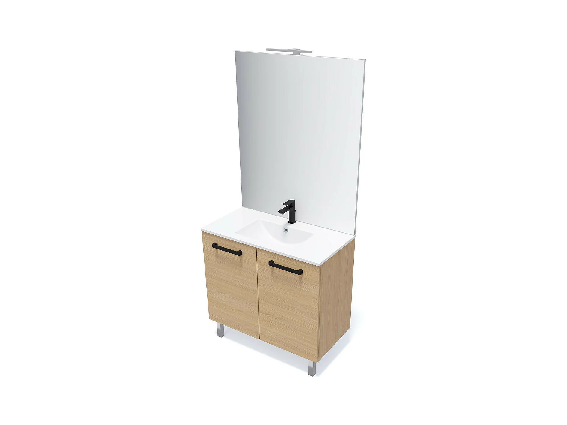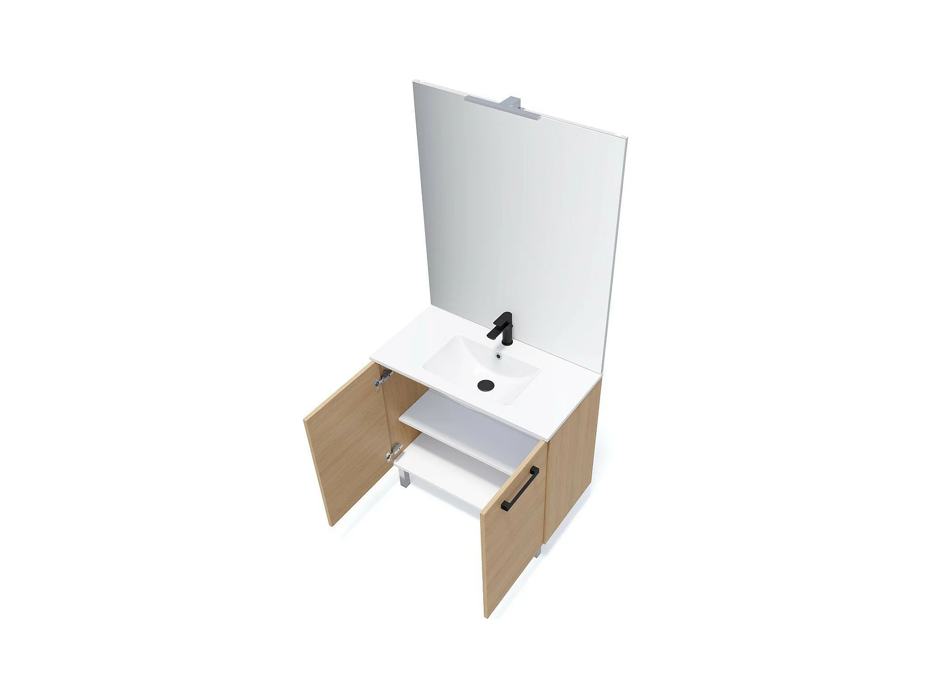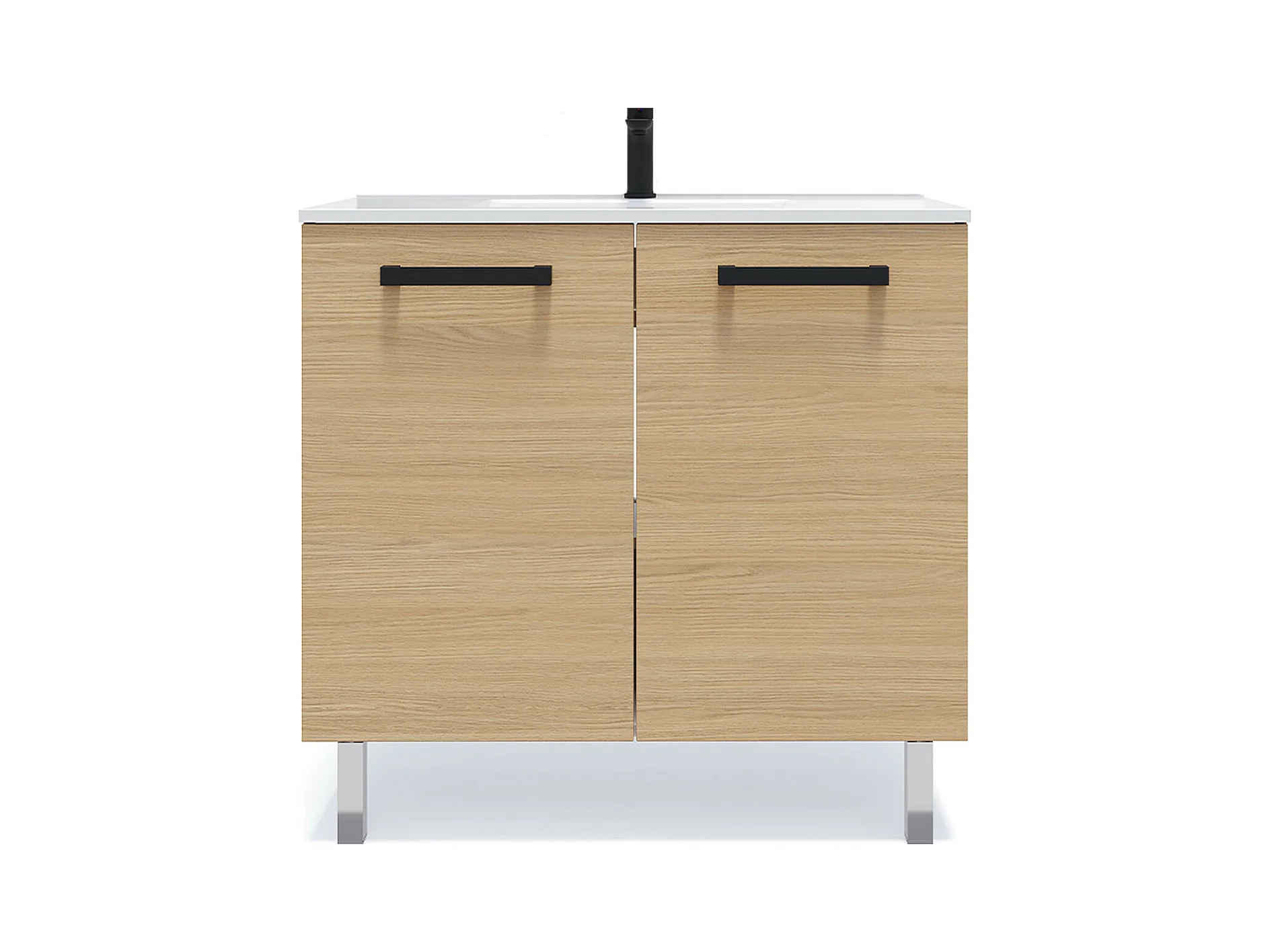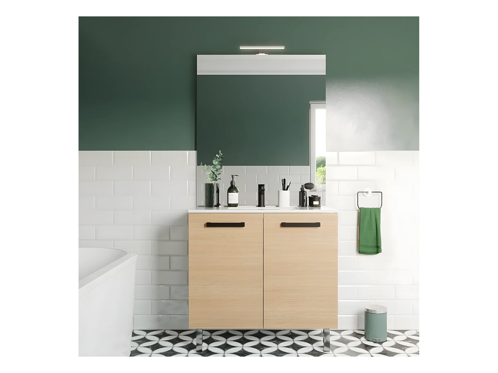 Meuble de salle de bain suspendu avec pieds vasque intégrée 90cm 2 portes Chêne clair - Chelsea