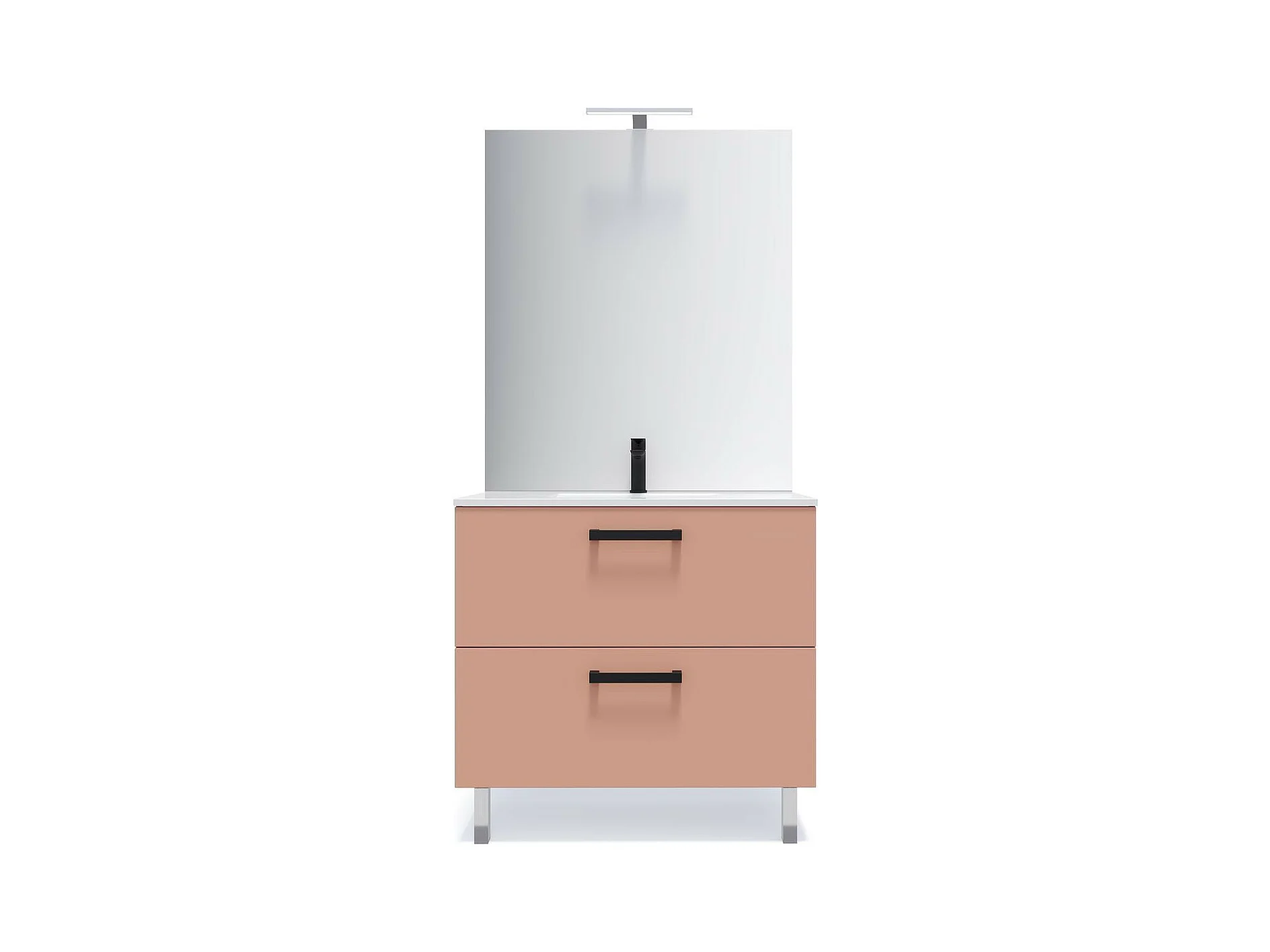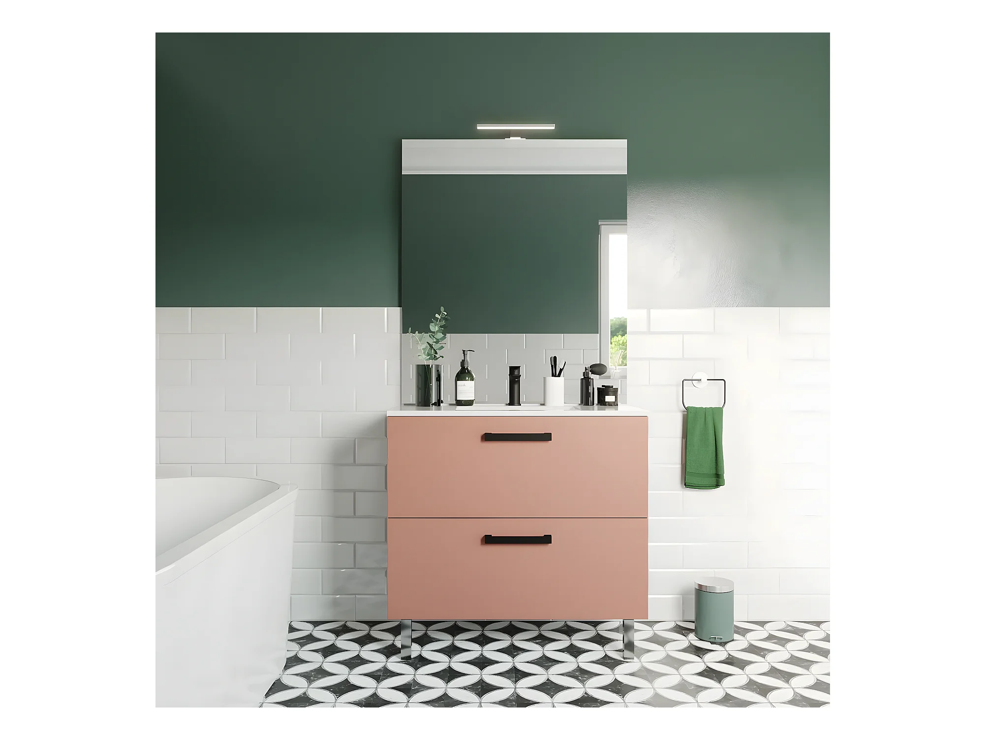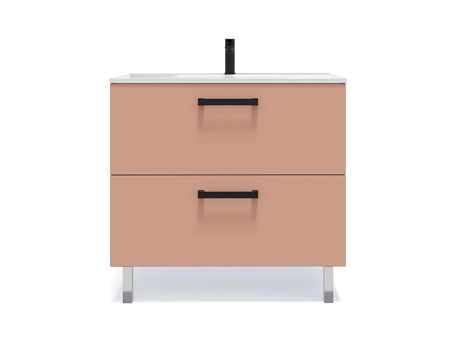 Meuble de salle de bain suspendu avec pieds vasque intégrée 90cm 2 tiroirs Abricot - Chelsea