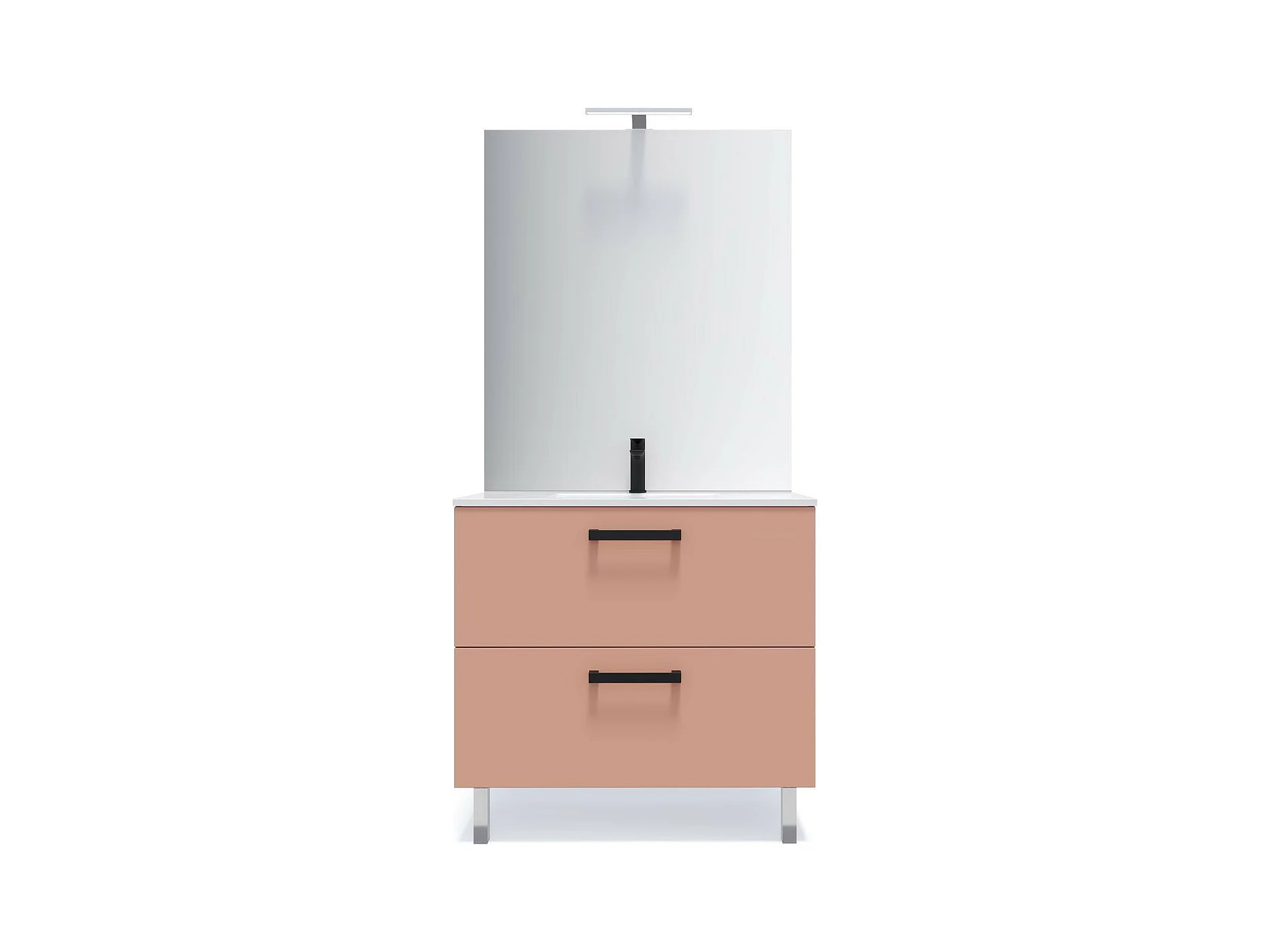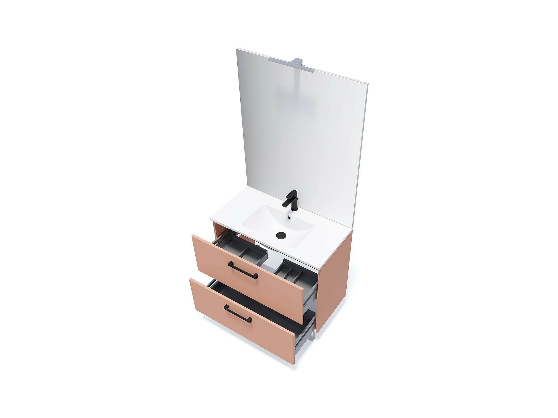 Meuble de salle de bain suspendu avec pieds vasque intégrée 90cm 2 tiroirs Abricot + miroir - Chelsea