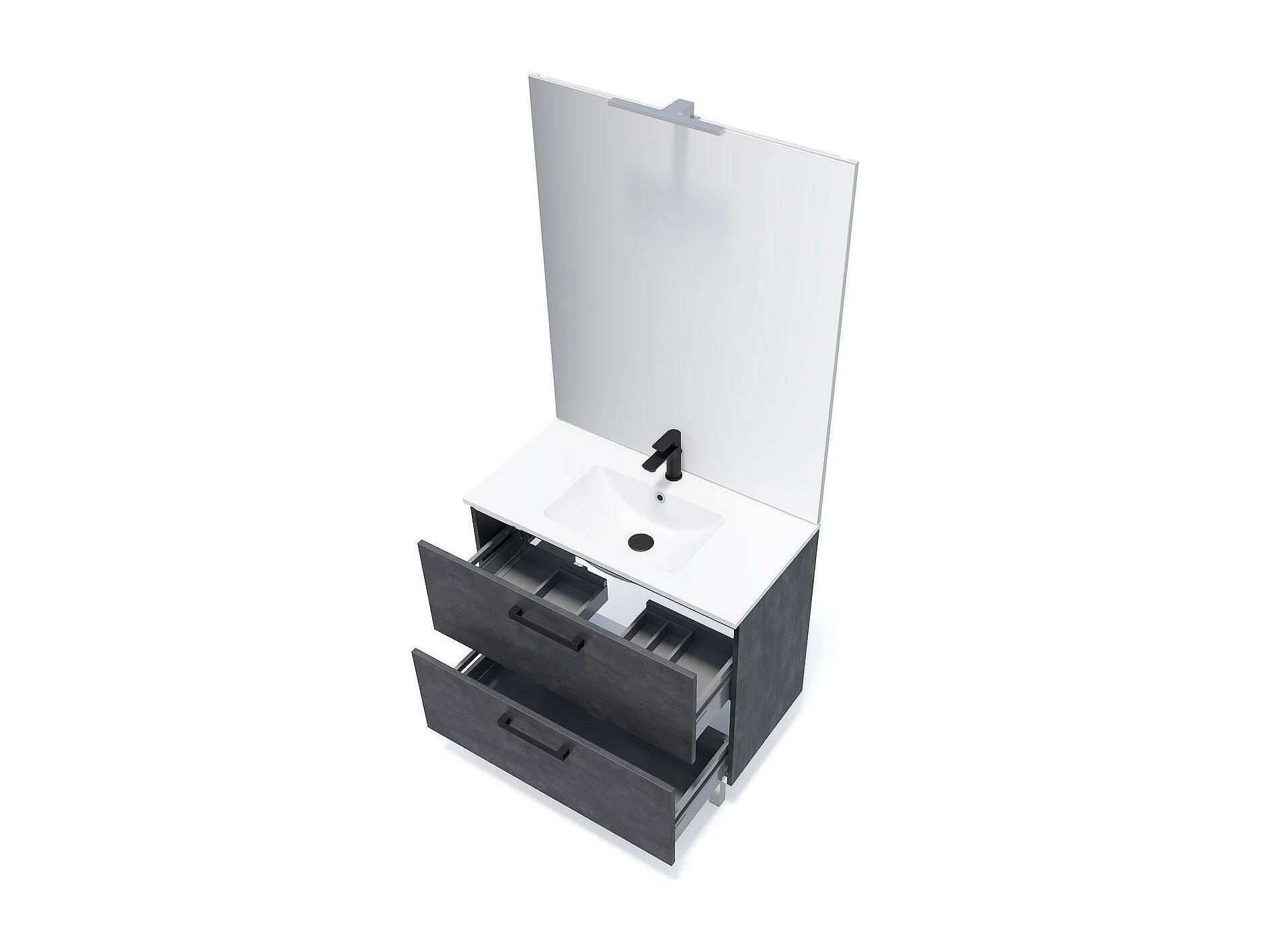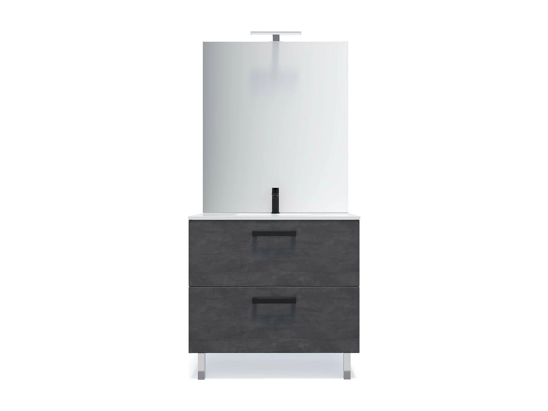 Meuble de salle de bain suspendu avec pieds vasque intégrée 90cm 2 tiroirs Ardoise métallisée + miroir - Chelsea